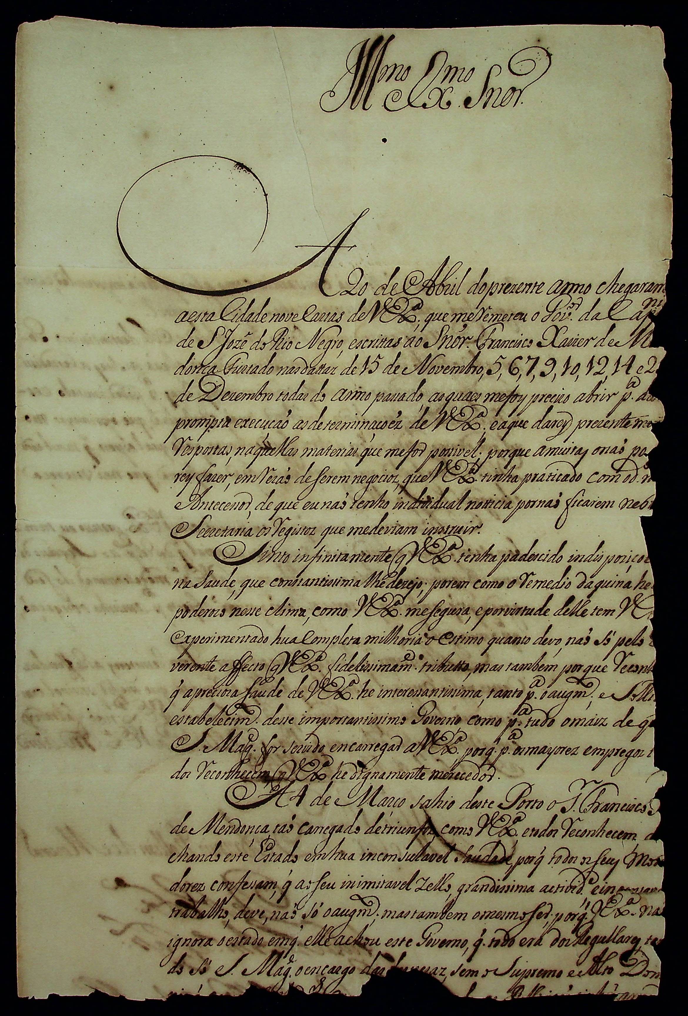 CARTA do [Governador e Capitão-General da Capitania do Pará] Manoel Bernardo de Mello de Castro ao [Governador e Capitão-General de Mato Grosso] Antônio Rolim de Moura.