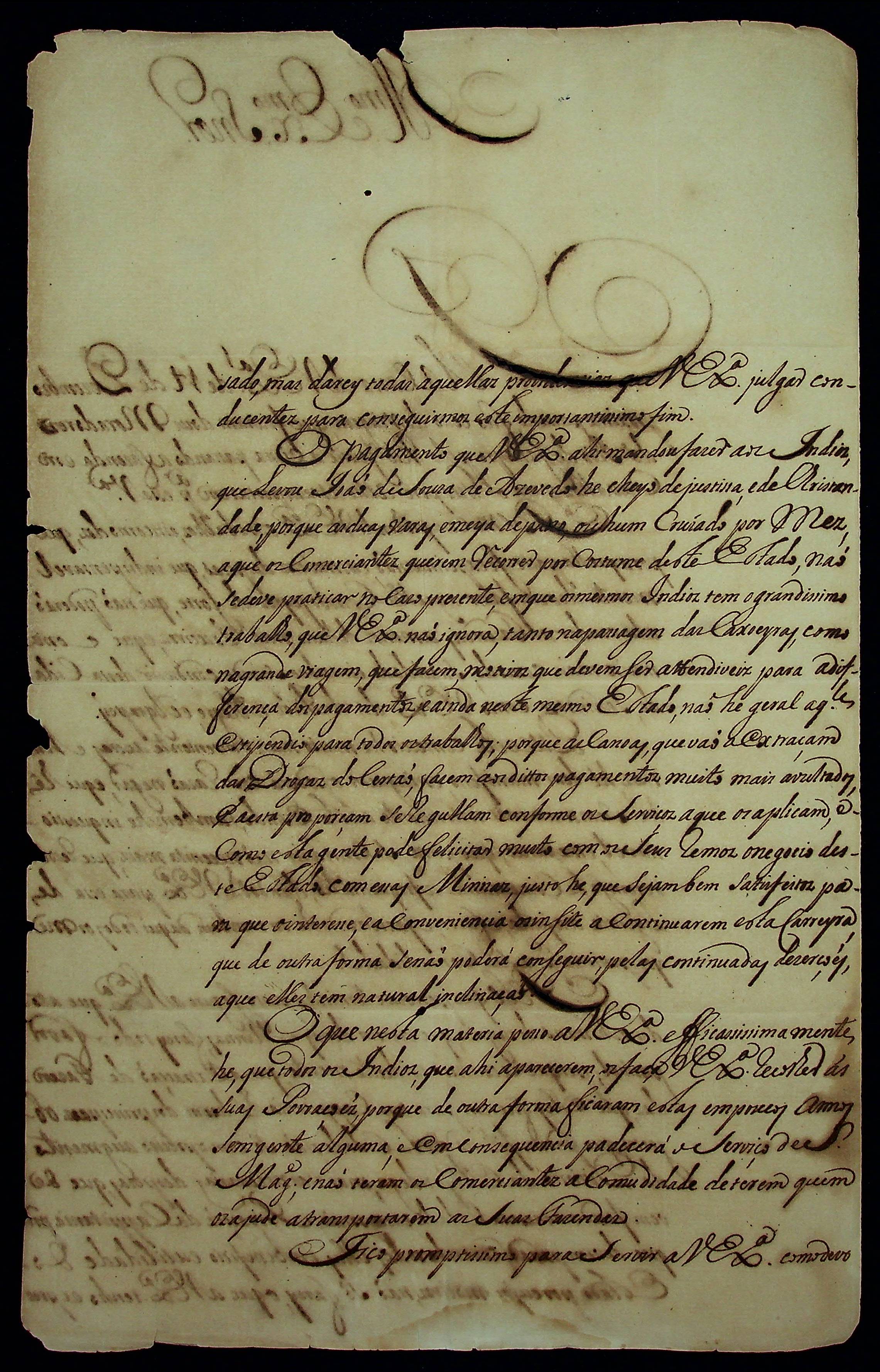 CARTA do [Governador e Capitão-General da Capitania do Grão Pará e Maranhão] Bernardo de Mello e Castro ao [Governador e Capitão-General da Capitania de Mato Grosso] Antônio Rolim de Moura.