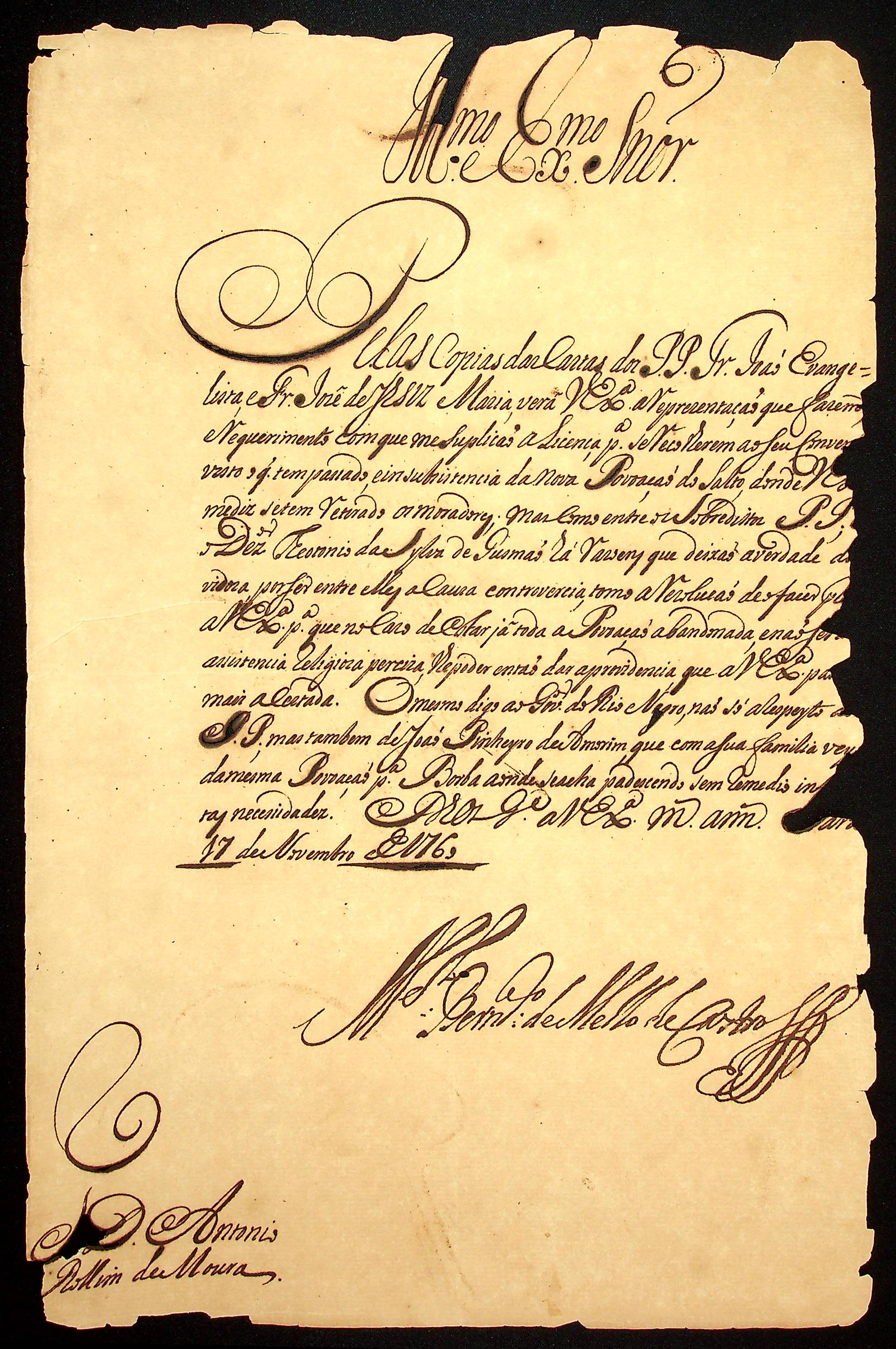 CARTA do [Governador e Capitão-General da Capitania do Pará] Manoel Bernardo de Mello de Castro ao [Governador e Capitão-General da Capitania de Mato Grosso] Antônio Rolim de Moura.
