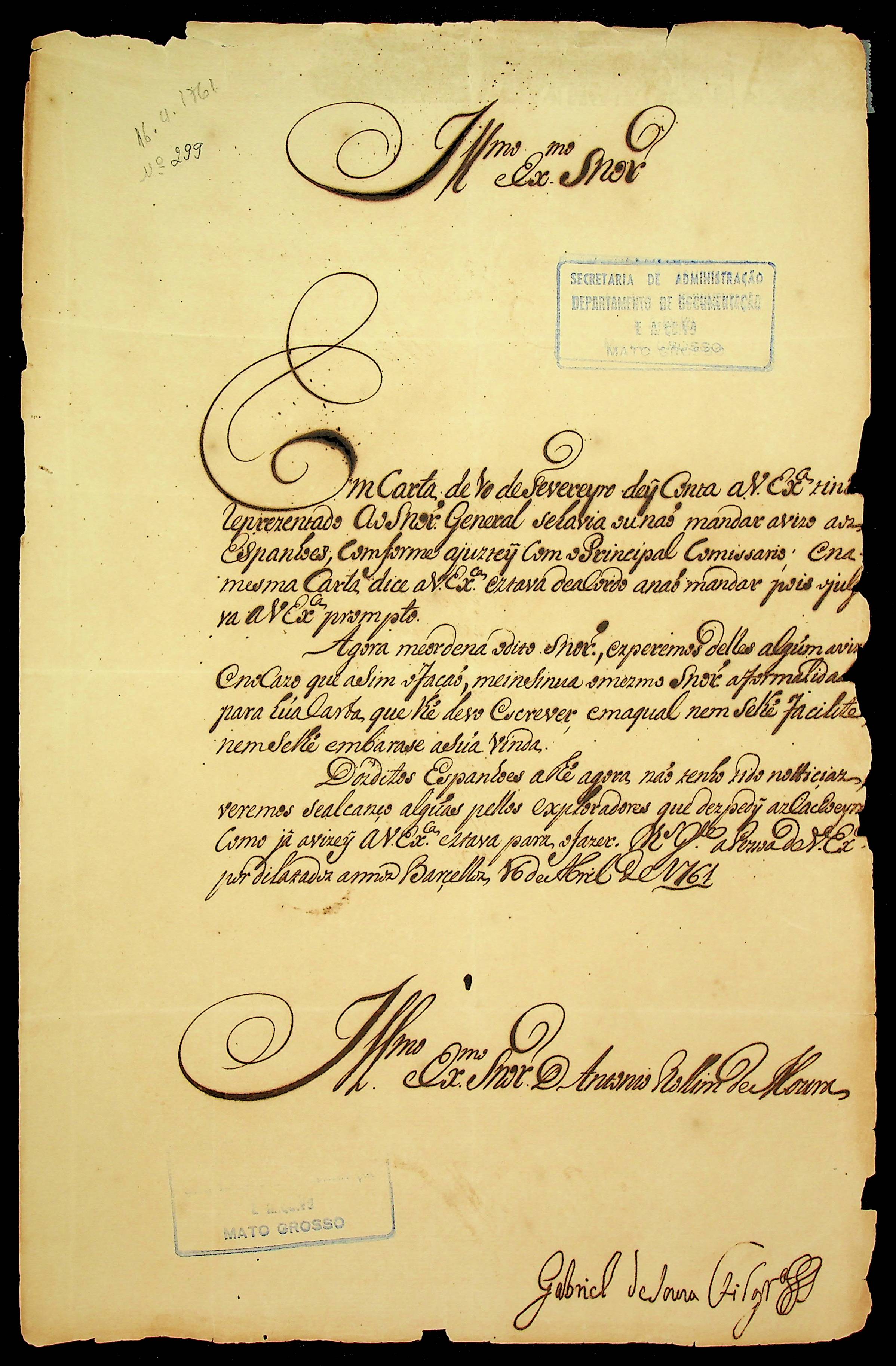 CARTA do [Governador e Capitão-General da Capitania de São José do Rio Negro] Gabriel de Souza Figueira ao [Governador e Capitão-General da Capitania de Mato Grosso] Antônio Rolim de Moura.