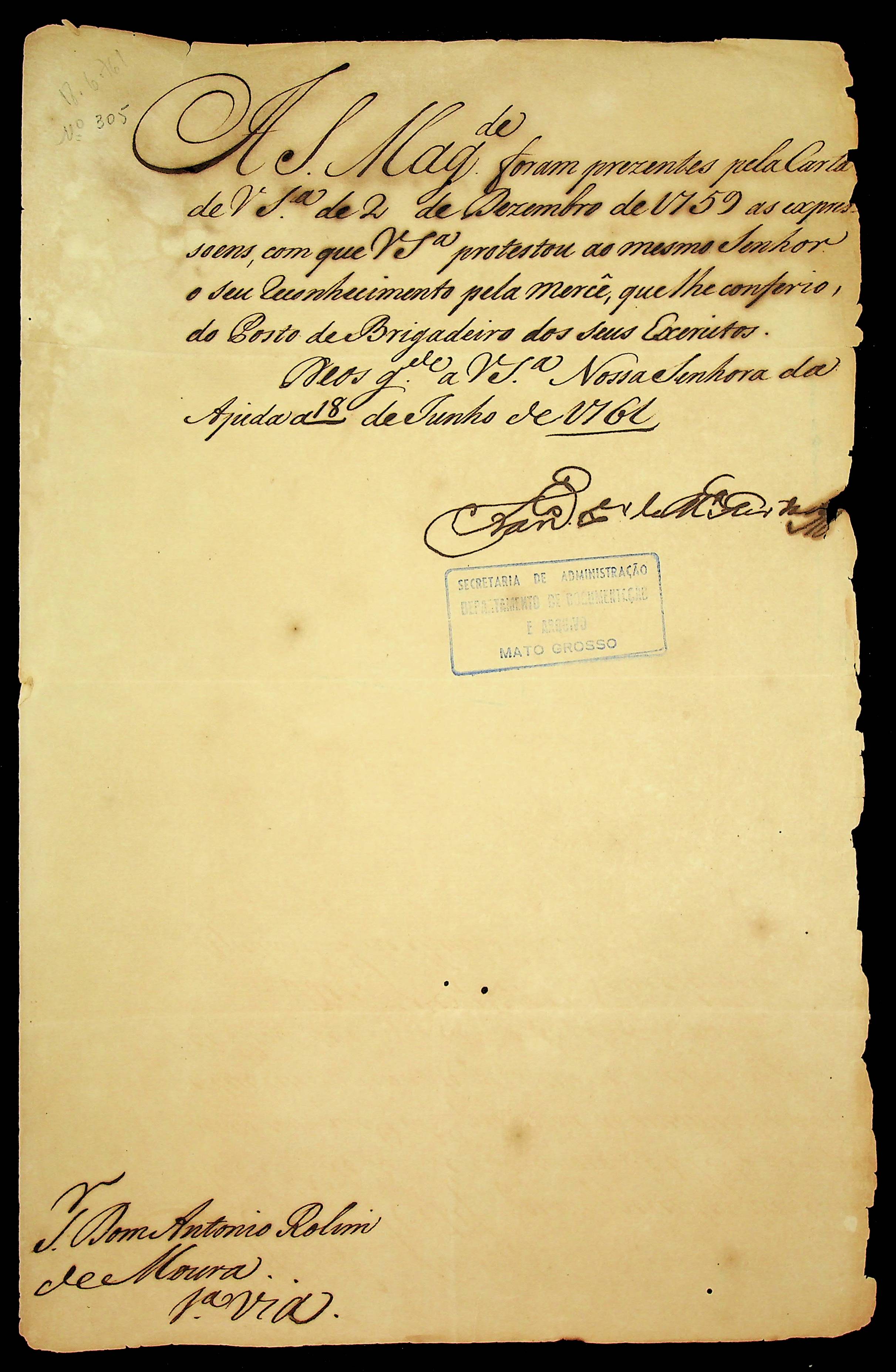 CARTA de Francisco Xavier de Mendonça Furtado ao [Governador e Capitão-General da Capitania de Mato Grosso] Antônio Rolim de Moura.