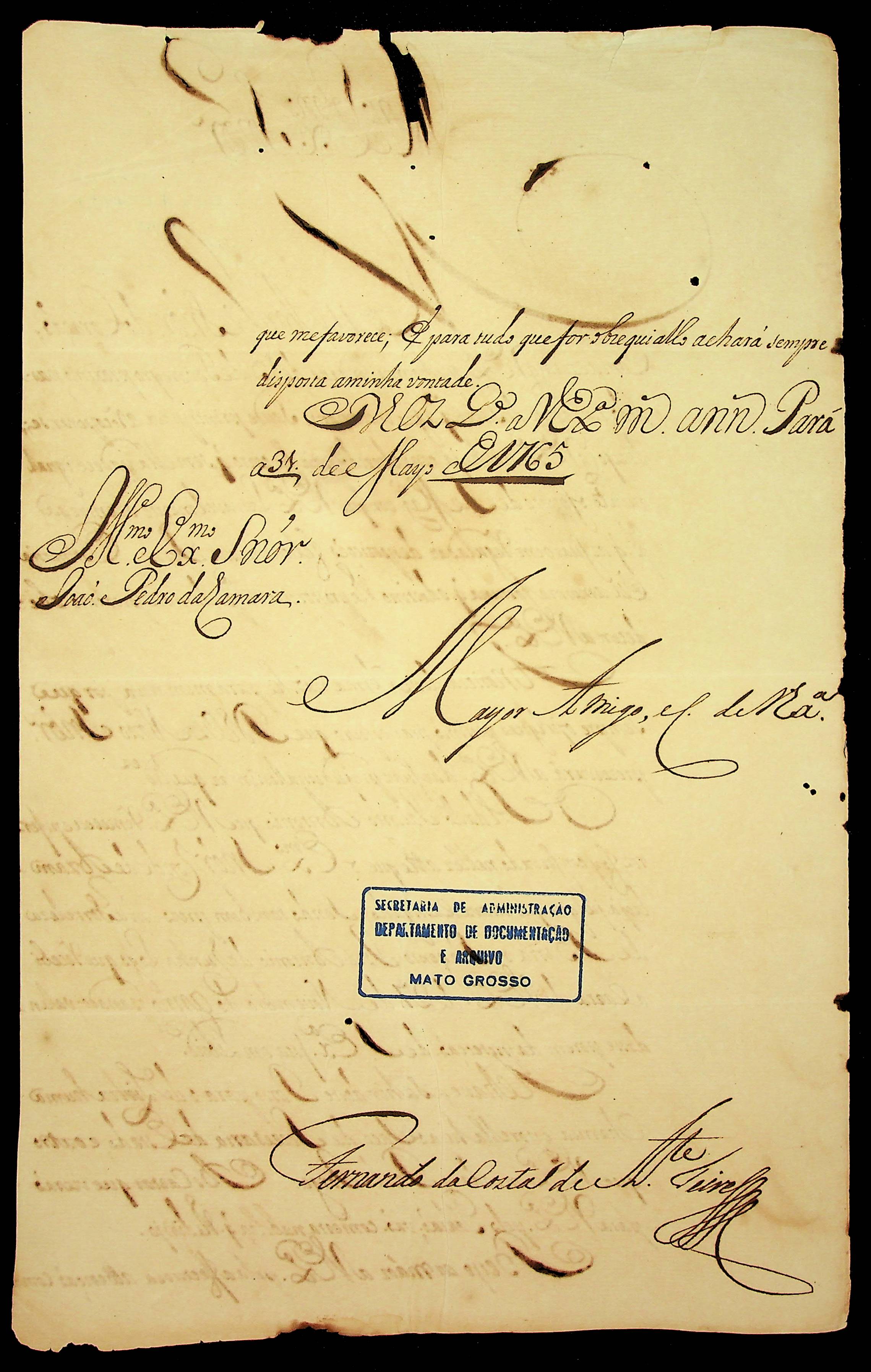 CARTA do [Governador e Capitão-General da Capitania do Grão Pará e Maranhão] Fernando da Costa [Ataíde] Teive ao [Governador e Capitão-General da Capitania de Mato Grosso] João Pedro da Câmara.