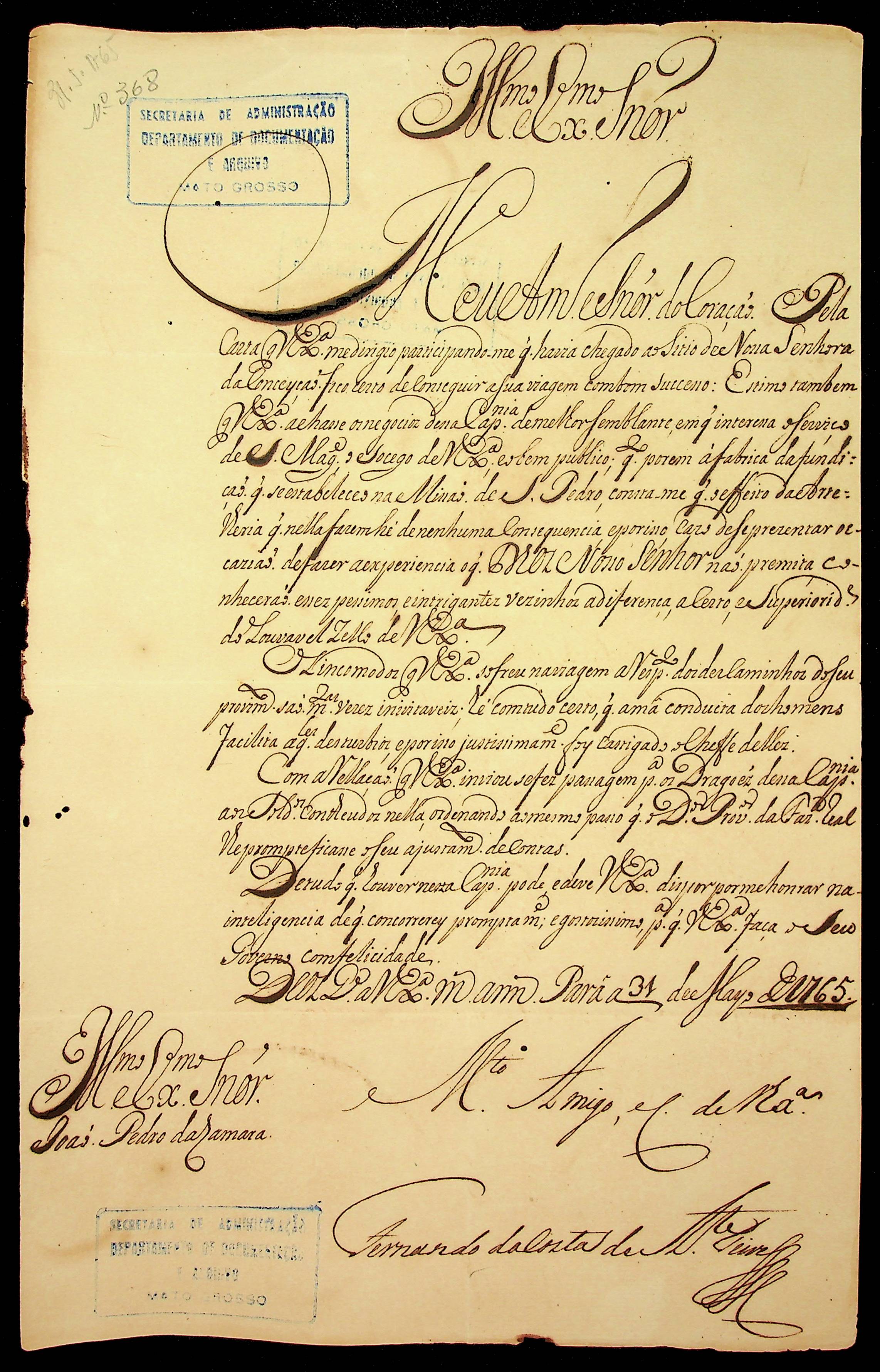 CARTA do [Governador e Capitão-General da Capitania do Grão Pará e Maranhão] Fernando da Costa [Ataíde] Teive ao [Governador e Capitão-General da Capitania de Mato Grosso] João Pedro da Câmara.