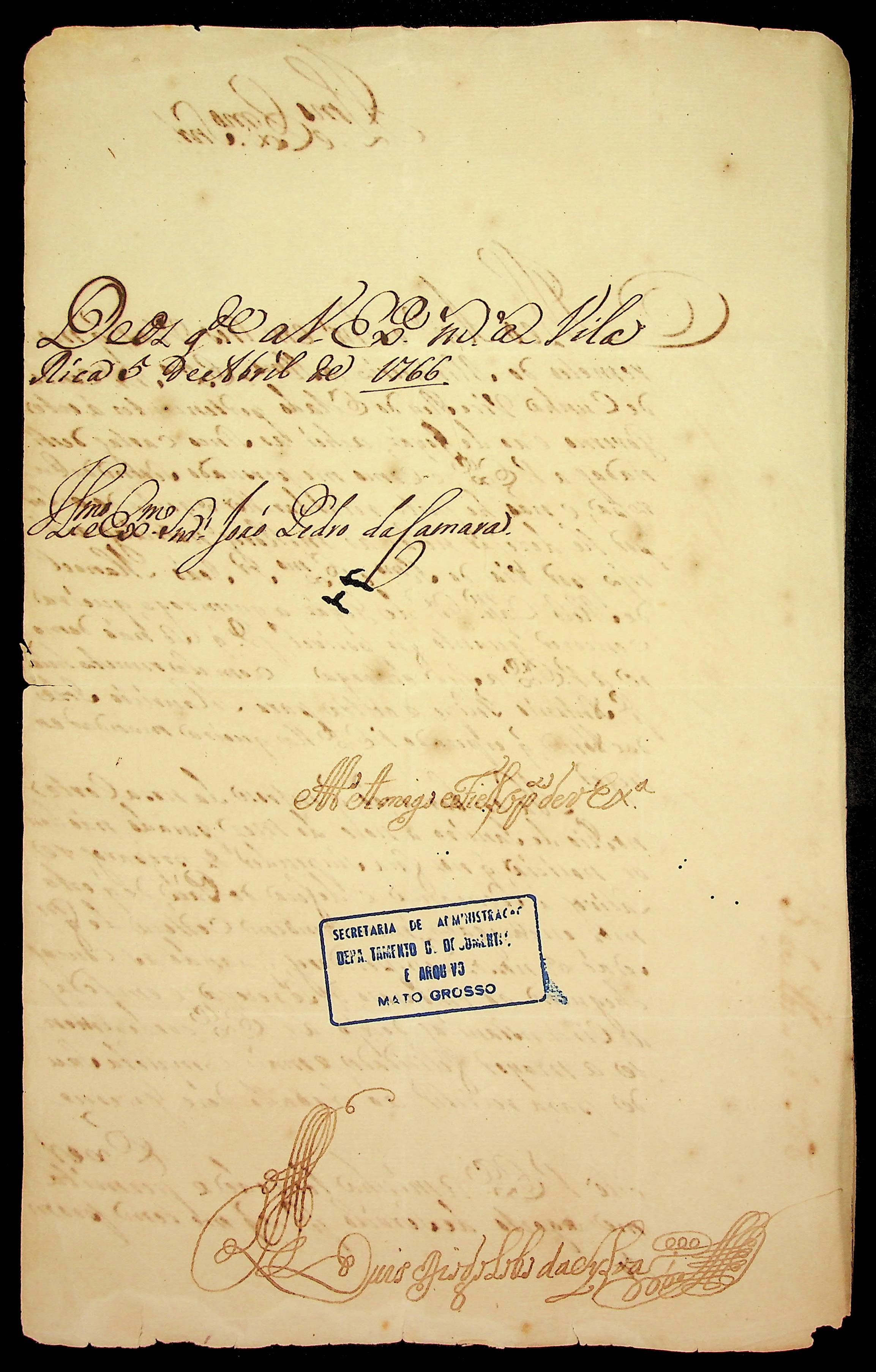 CARTA do [Governador e Capitão-General da Capitania de Minas Gerais] Luís [Diogo] Lobo da Silva ao Governador e Capitão-General da Capitania de Mato Grosso João Pedro da Câmara.