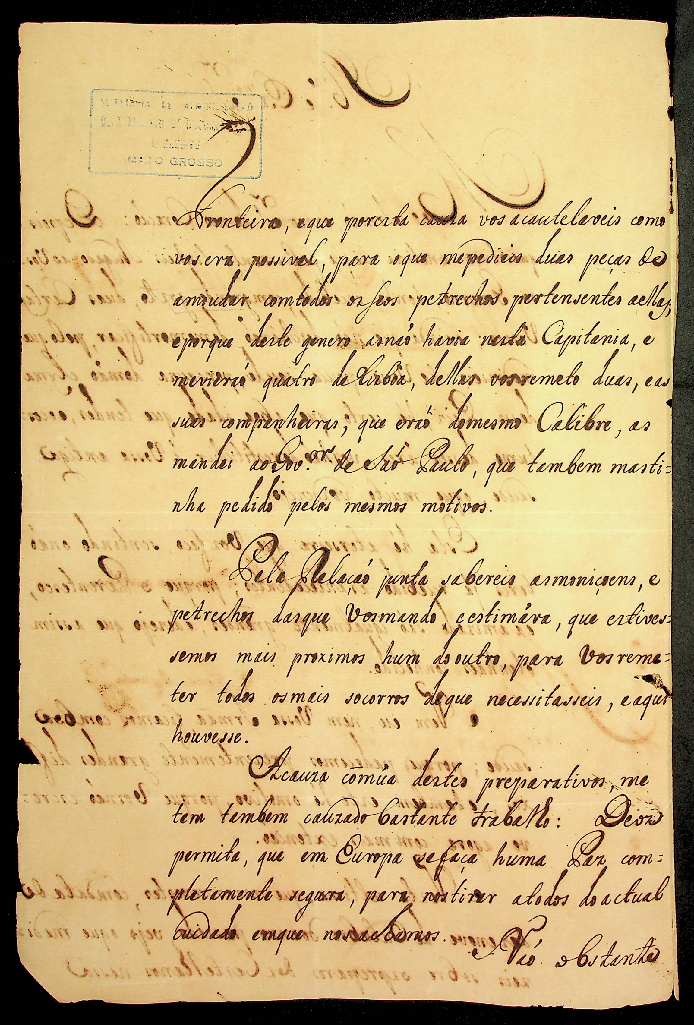 CARTA do Conde da Cunha ao [Governador e Capitão-General da Capitania de Mato Grosso] João Pedro da Câmara.
