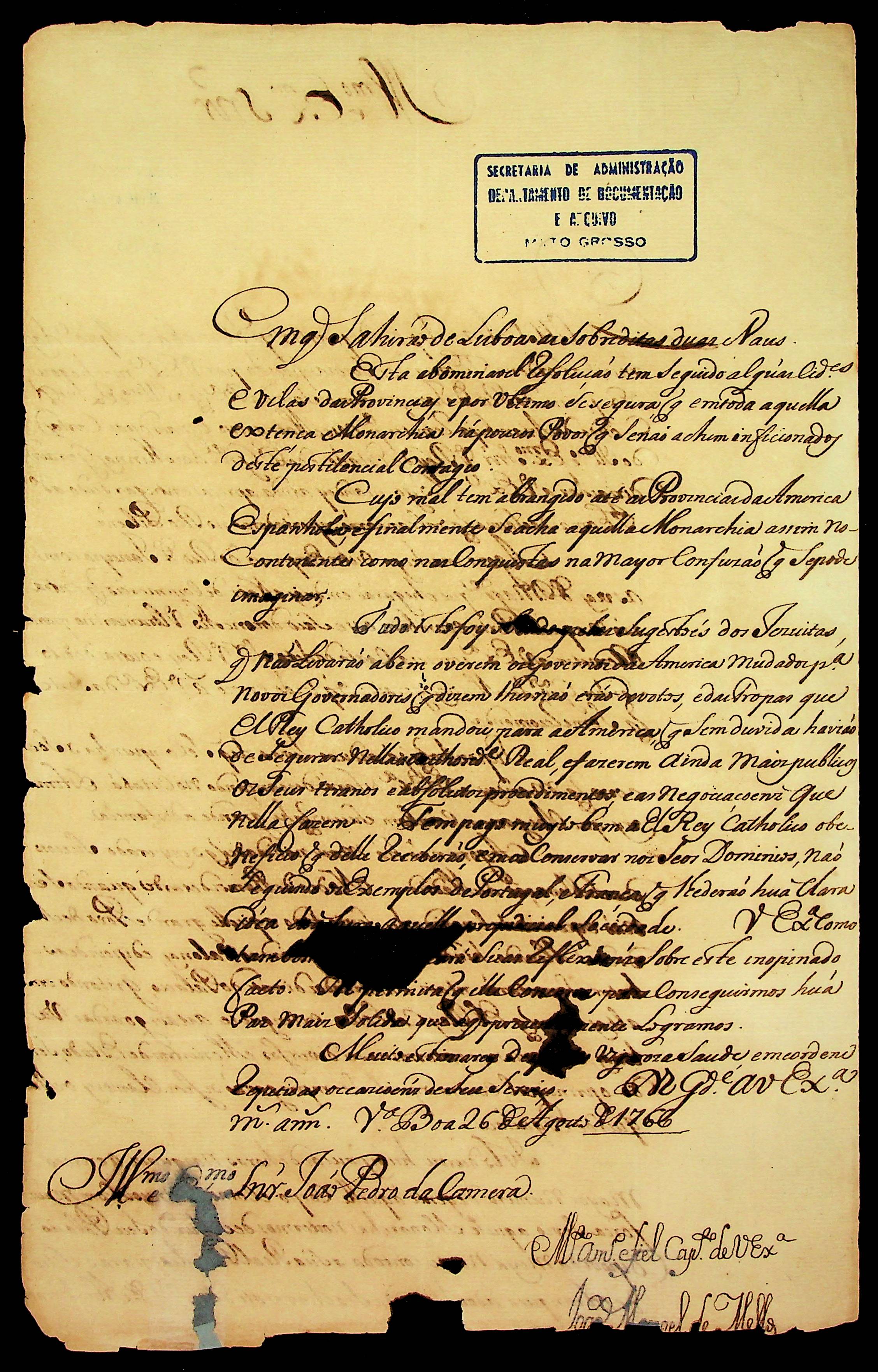CARTA do [Governador e Capitão-General da Capitania de Goiás] João Manoel de Mello ao [Governador e Capitão-General da Capitania de Mato Grosso] João Pedro da Câmara.
