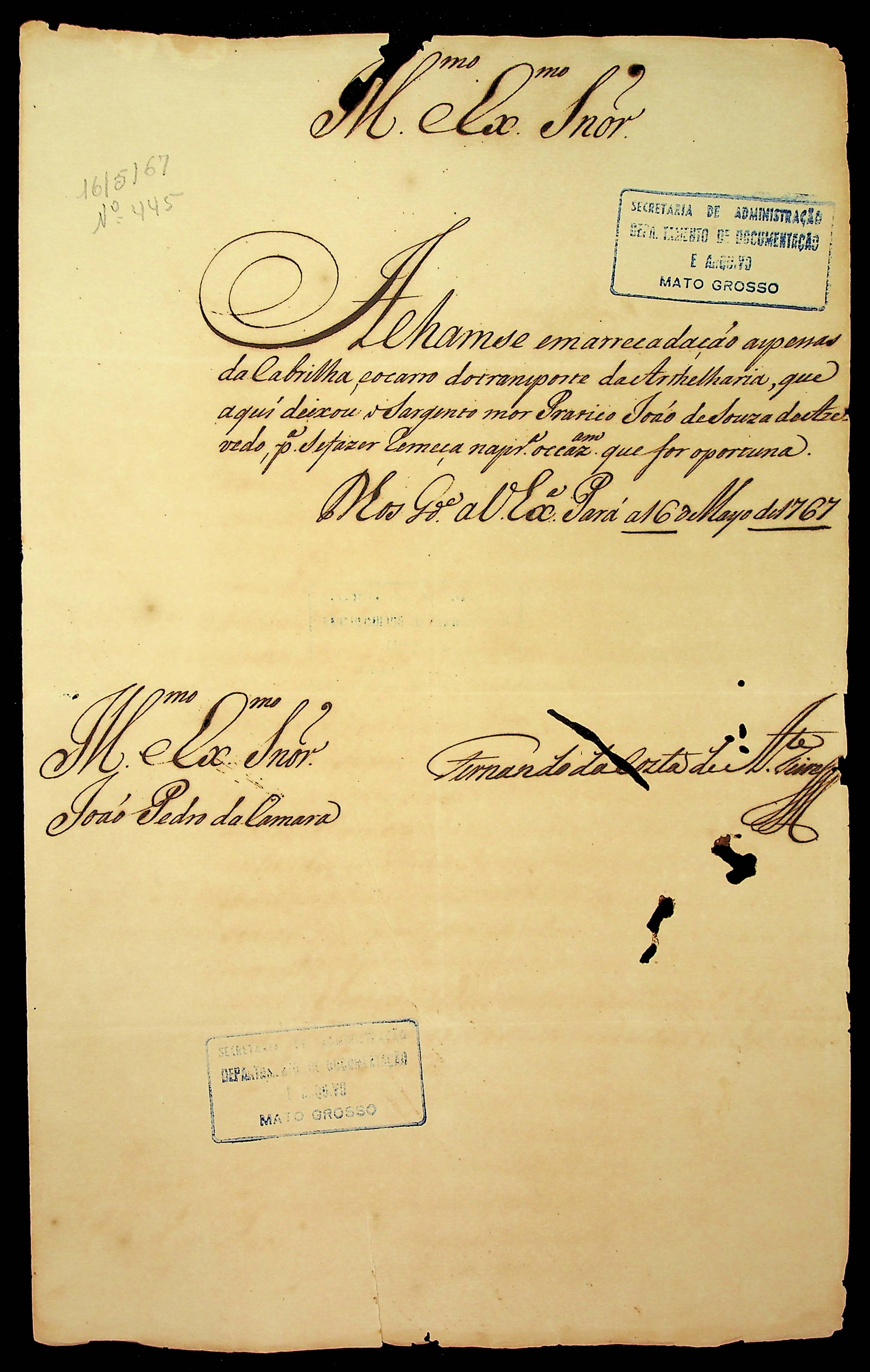 CARTA do [Governador e Capitão-General da Capitania do Grão Pará e Maranhão] Fernando da Costa de [Ataíde] Teive ao [Governador e Capitão-General da Capitania de Mato Grosso] João Pedro da Câmara.