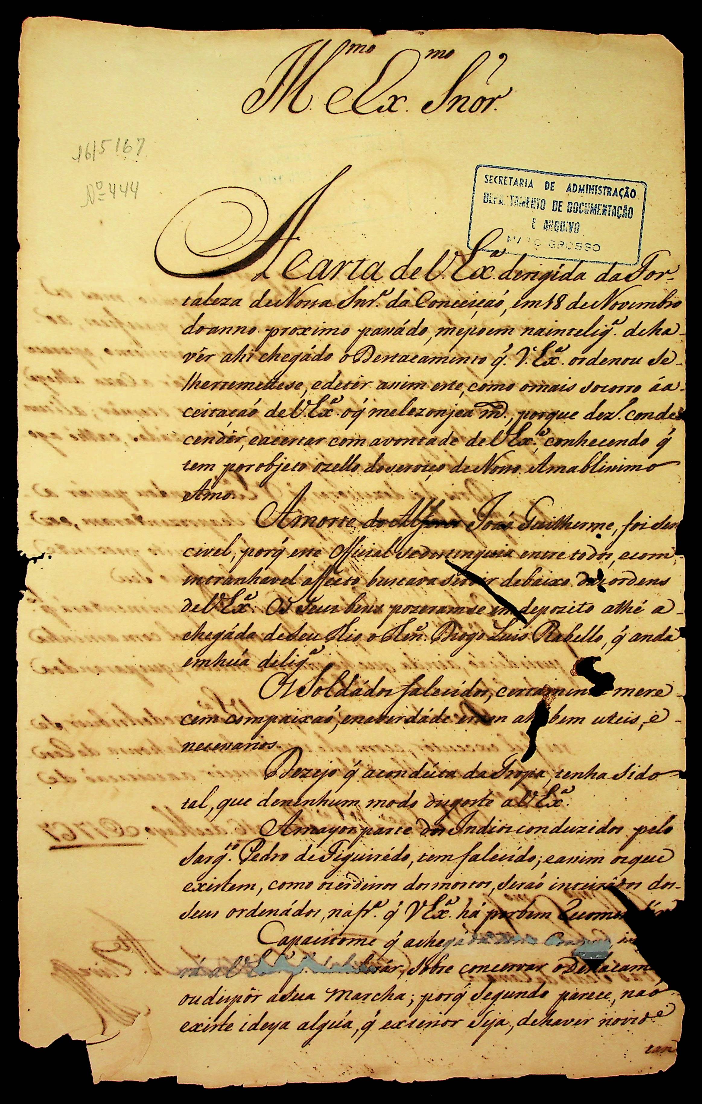 CARTA do [Governador e Capitão-General da Capitania do Grão Pará e Maranhão] Fernando da Costa de [Ataíde] Teive ao [Governador e Capitão-General da Capitania de Mato Grosso] João Pedro da Câmara.