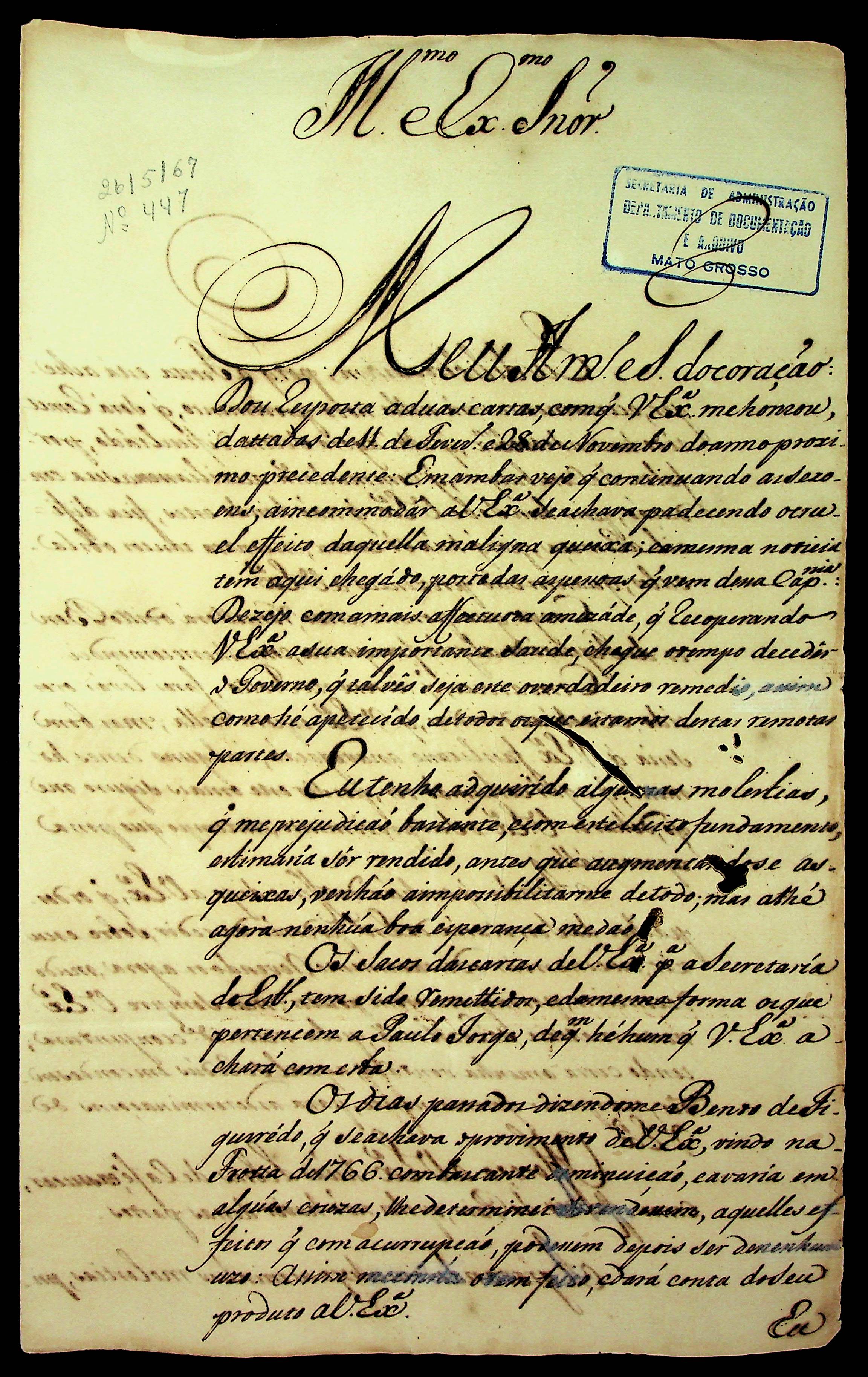CARTA do [Governador e Capitão-General da Capitania do Grão Pará e Maranhão] Fernando da Costa de [Ataíde] Teive ao [Governador e Capitão-General da Capitania de Mato Grosso] João Pedro Câmara.