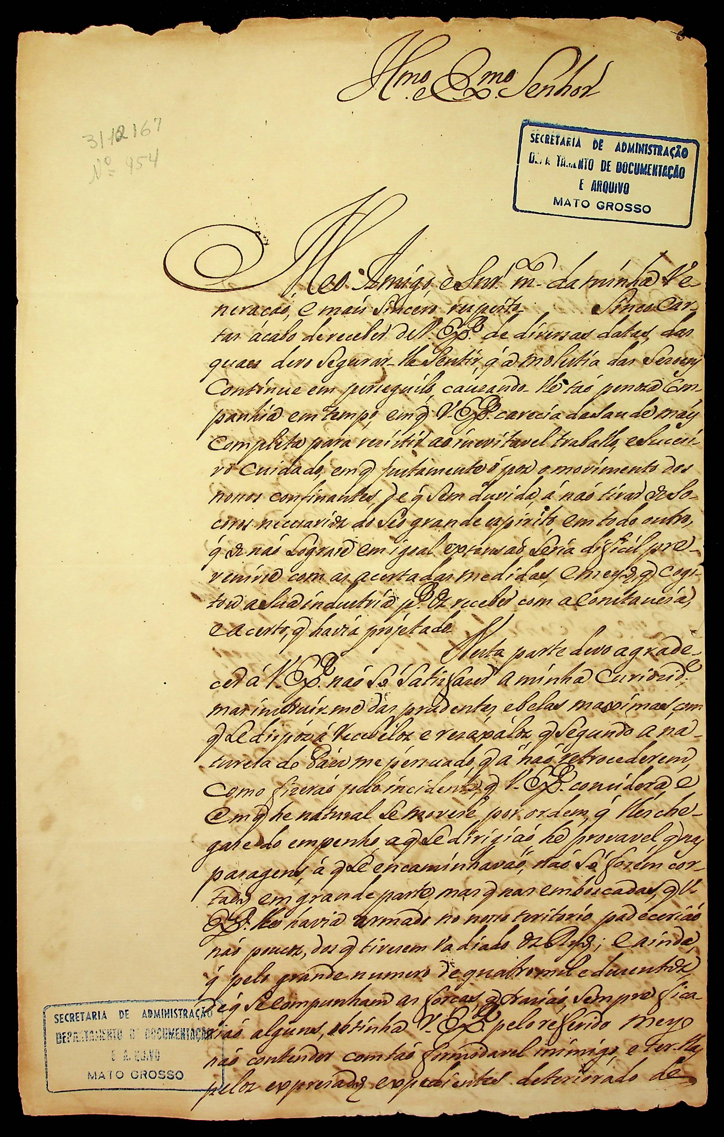 CARTA do [Governador e Capitão-General da Capitania de Minas Gerais] Luiz [Diogo] Lobo da Silva ao [Governador e Capitão-General da Capitania de Mato Grosso] João Pedro da Câmara.