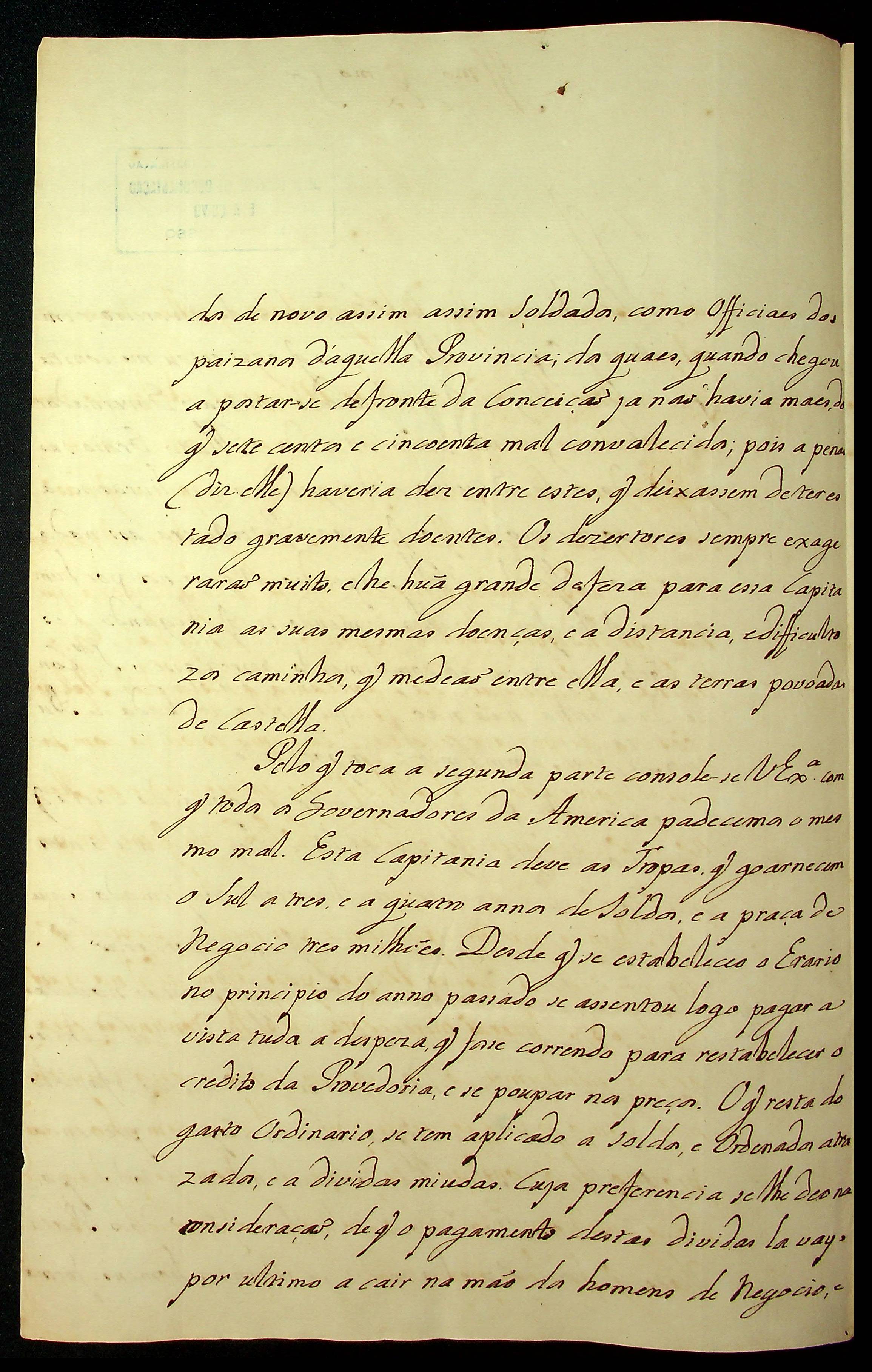 CARTA do Conde de Azambuja ao [Governador e Capitão-General da Capitania de Mato Grosso] Luís Pinto de Souza Coutinho.