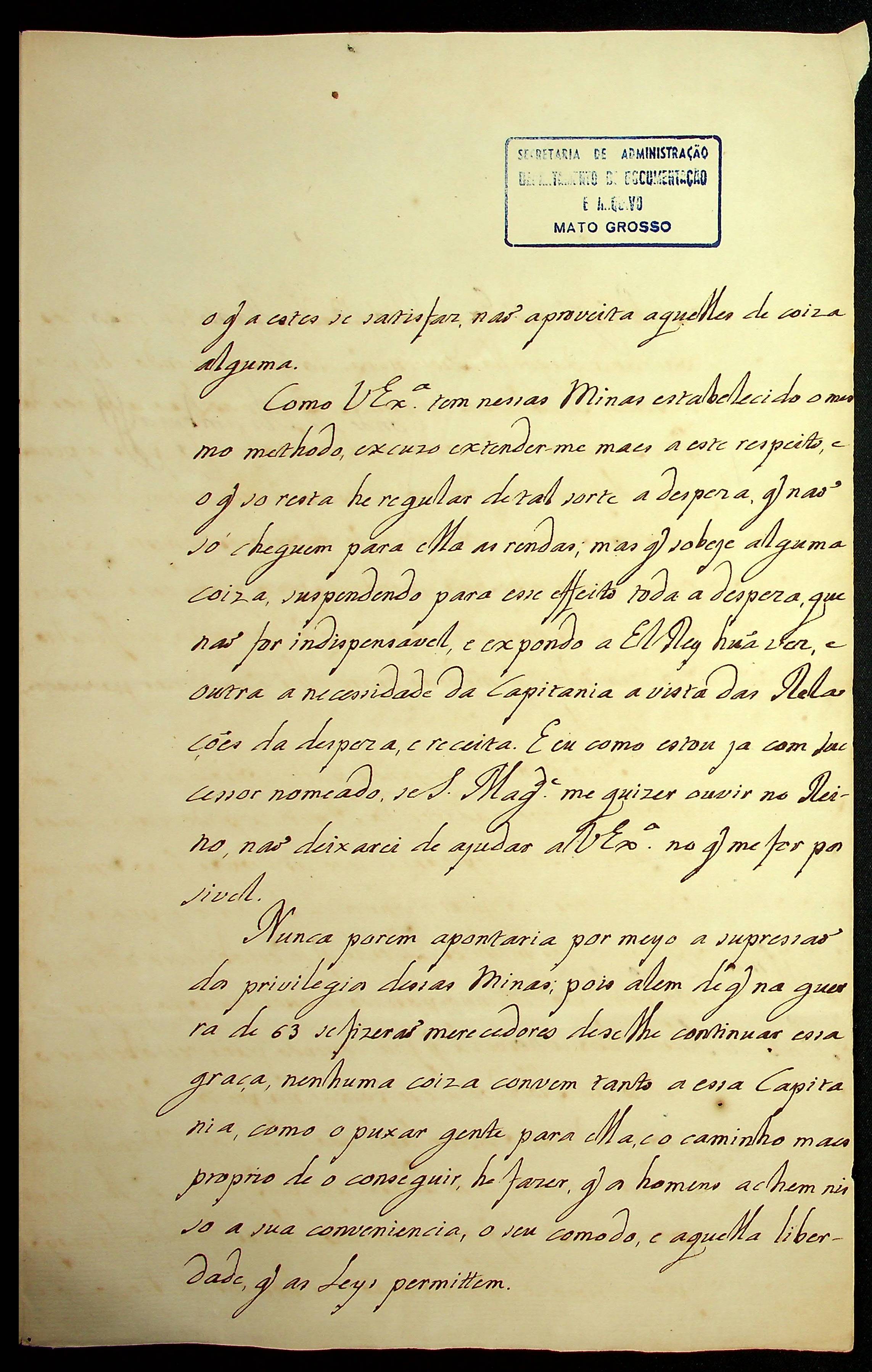 CARTA do Conde de Azambuja ao [Governador e Capitão-General da Capitania de Mato Grosso] Luís Pinto de Souza Coutinho.