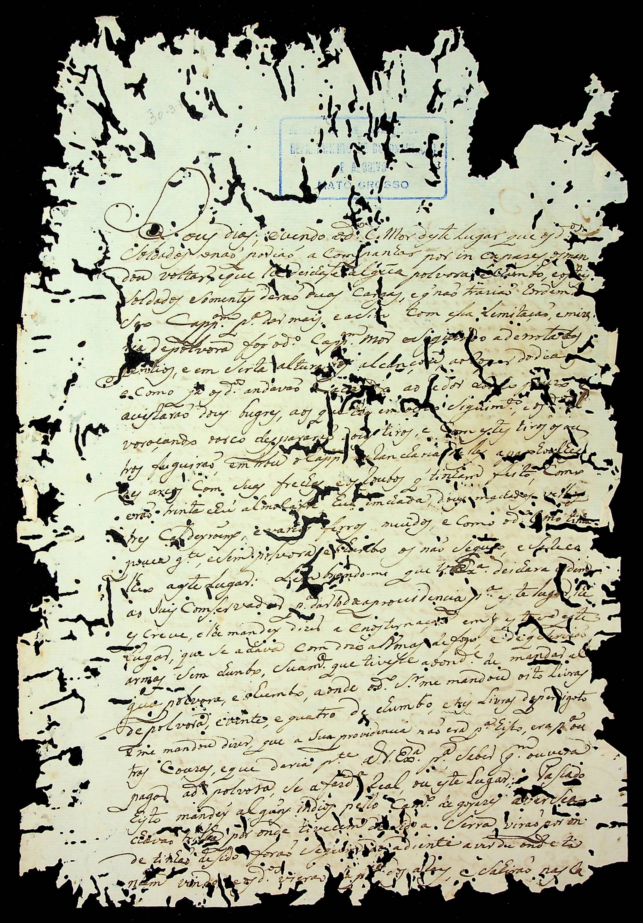 CARTA de João [Batista] de Carvalho ao [Governador e Capitão-General da Capitania de Mato Grosso] Luiz Pinto de Souza Coutinho.