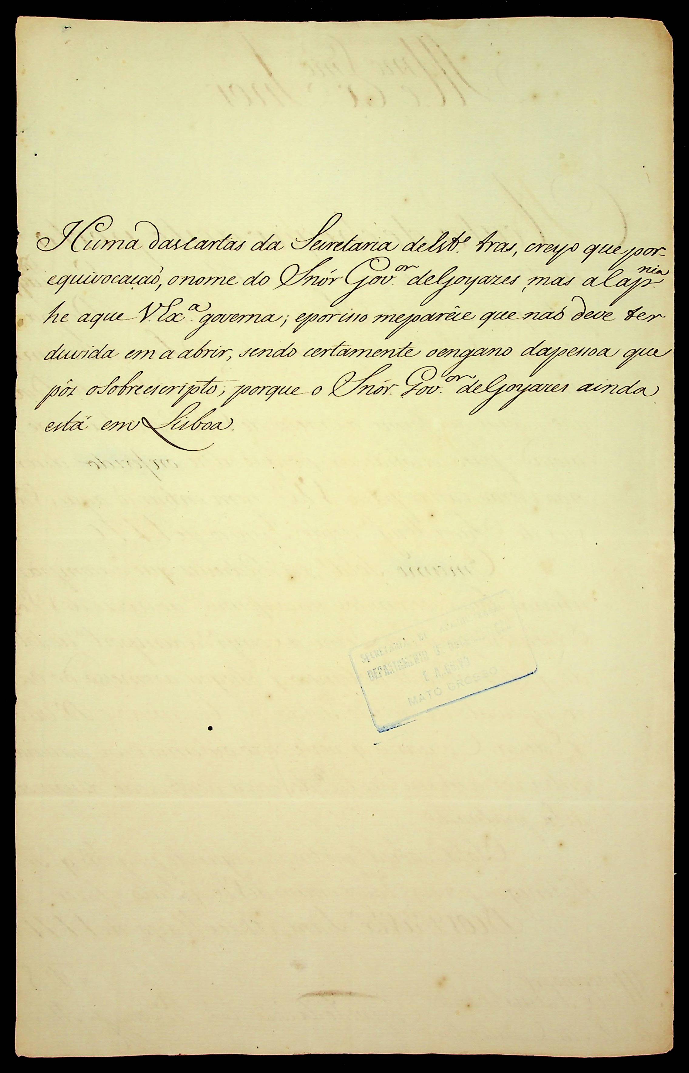 CARTA do [Governador e Capitão-General da Capitania do Grão Pará e Maranhão] Fernando da Costa de [Ataíde] Teive ao [Governador e Capitão-General da Capitania de Mato Grosso] Luís Pinto de Souza Coutinho.