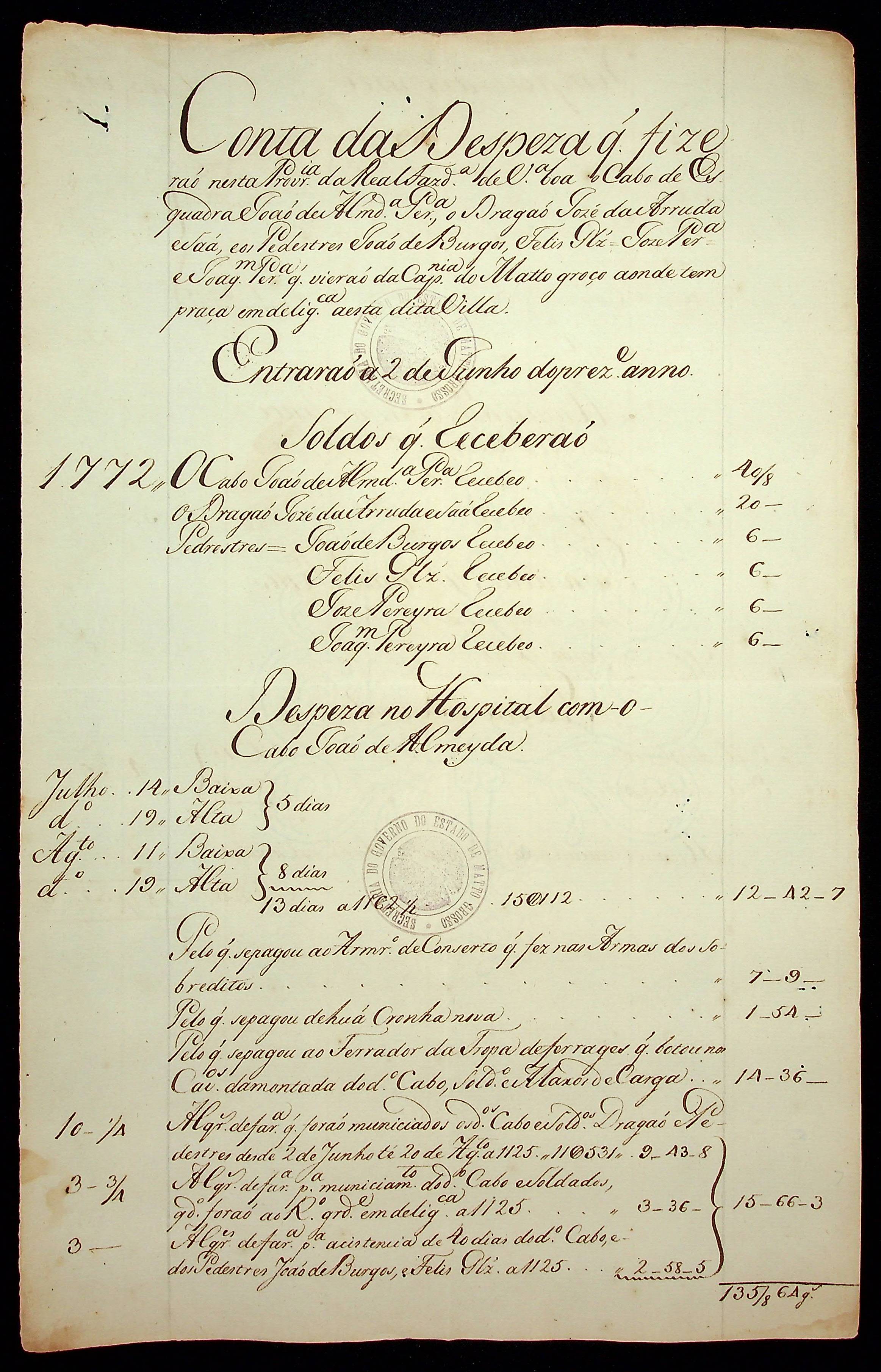 CARTA de José d' Almeida de [...] ao [Governador e Capitão-General da Capitania de Mato Grosso] Luiz Pinto de Souza Coutinho.