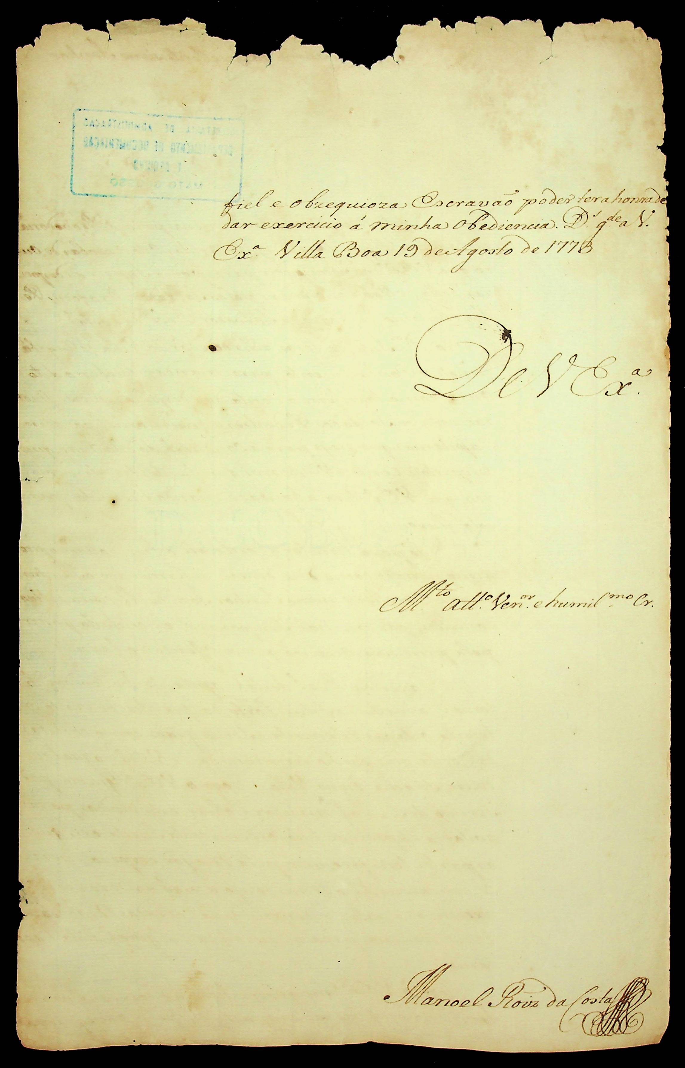 CARTA de Manoel Roiz da Costa ao [Governador e Capitão-General da Capitania de Mato Grosso Luís de Albuquerque de Melo Pereira e Cáceres].