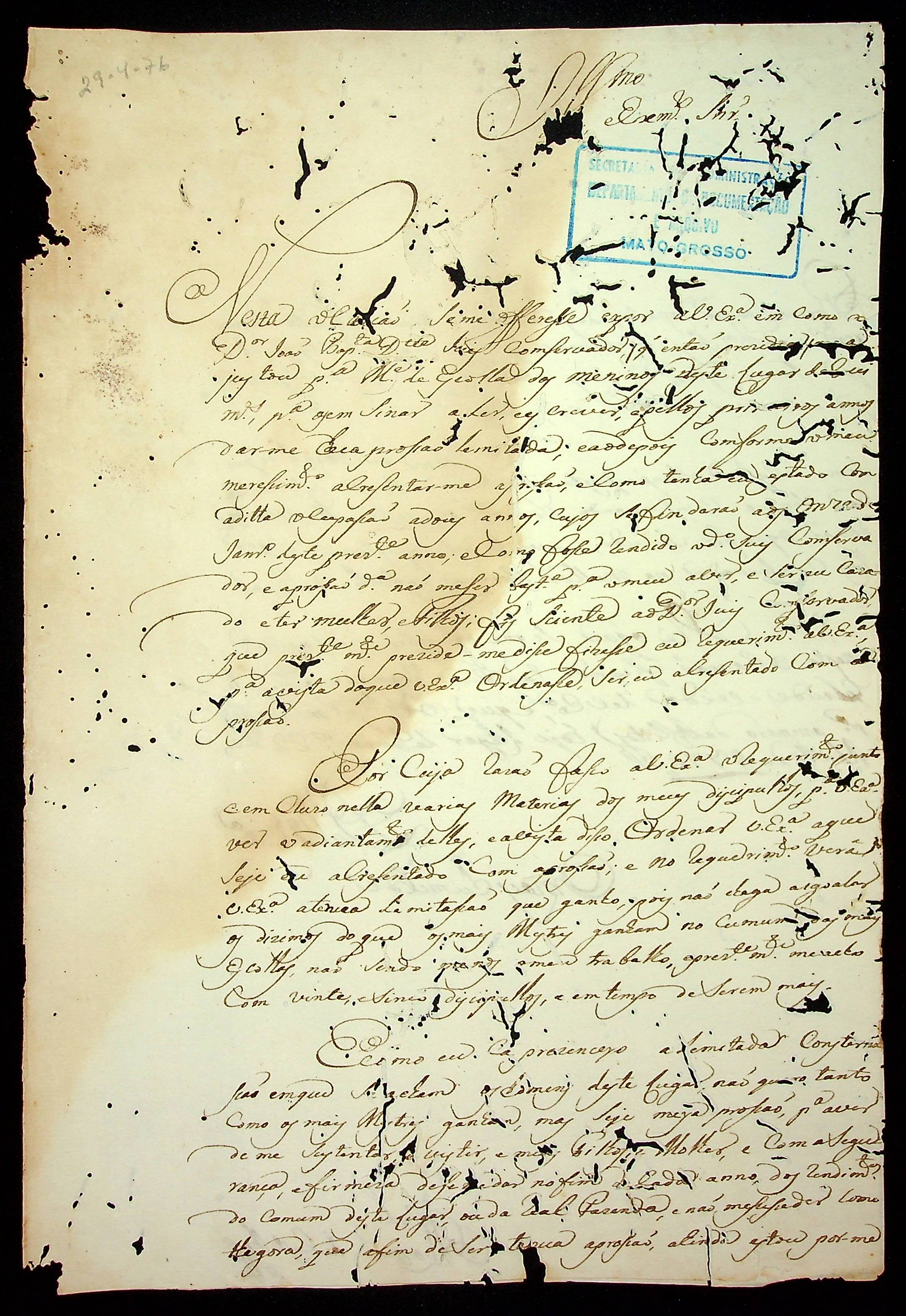 CARTA de Manoel [Tomás de Castilho] ao [Governador e Capitão-General da Capitania de Mato Grosso Luiz de Albuquerque de Melo Pereira e Cáceres].