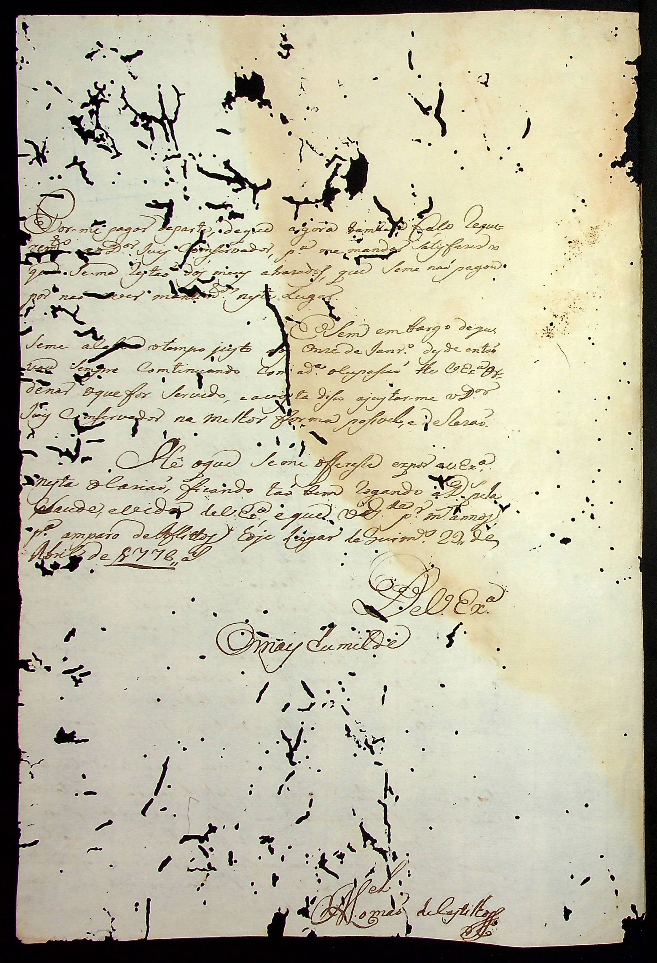 CARTA de Manoel [Tomás de Castilho] ao [Governador e Capitão-General da Capitania de Mato Grosso Luiz de Albuquerque de Melo Pereira e Cáceres].
