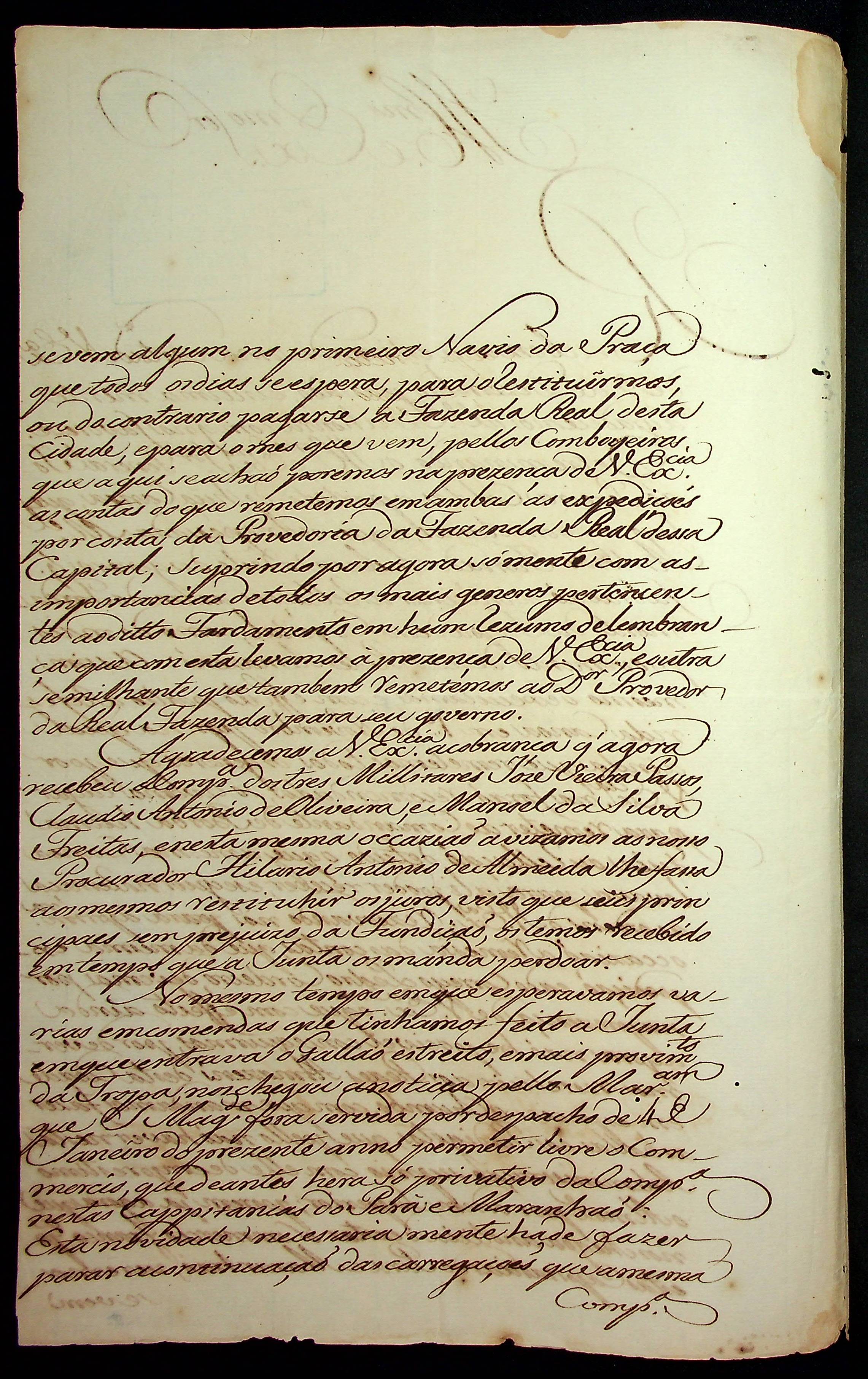 CARTA de Manoel José da Cunha e Antônio Coutinho de Almeida ao [Governador e Capitão-General da Capitania de Mato Grosso] Luiz de Albuquerque de Melo Pereira e Cáceres.