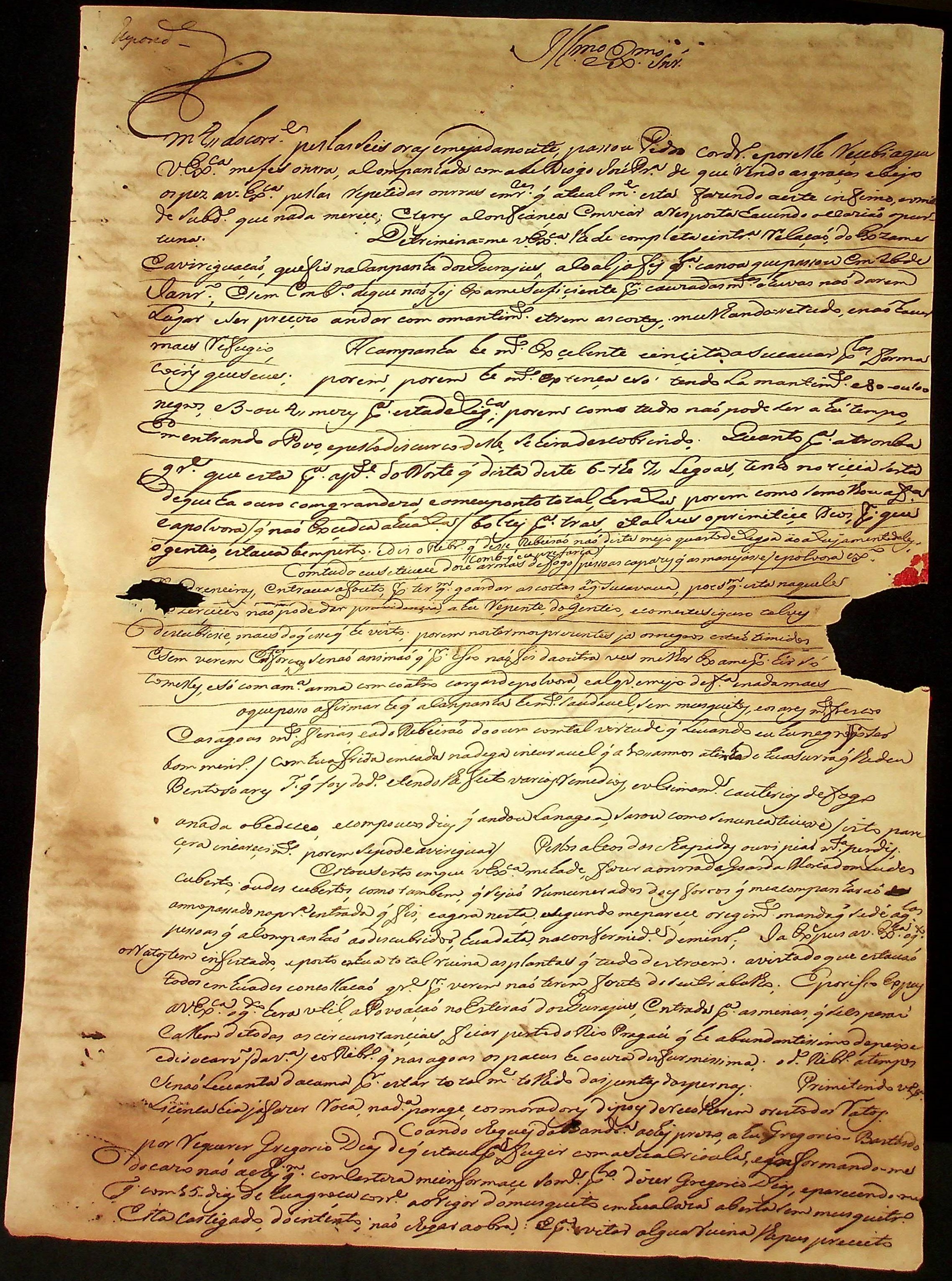 CARTA de Antônio José de Oliveira Andrade ao [Governador e Capitão-General da Capitania de Mato Grosso] Luiz de Albuquerque de Melo Pereira e Cáceres.