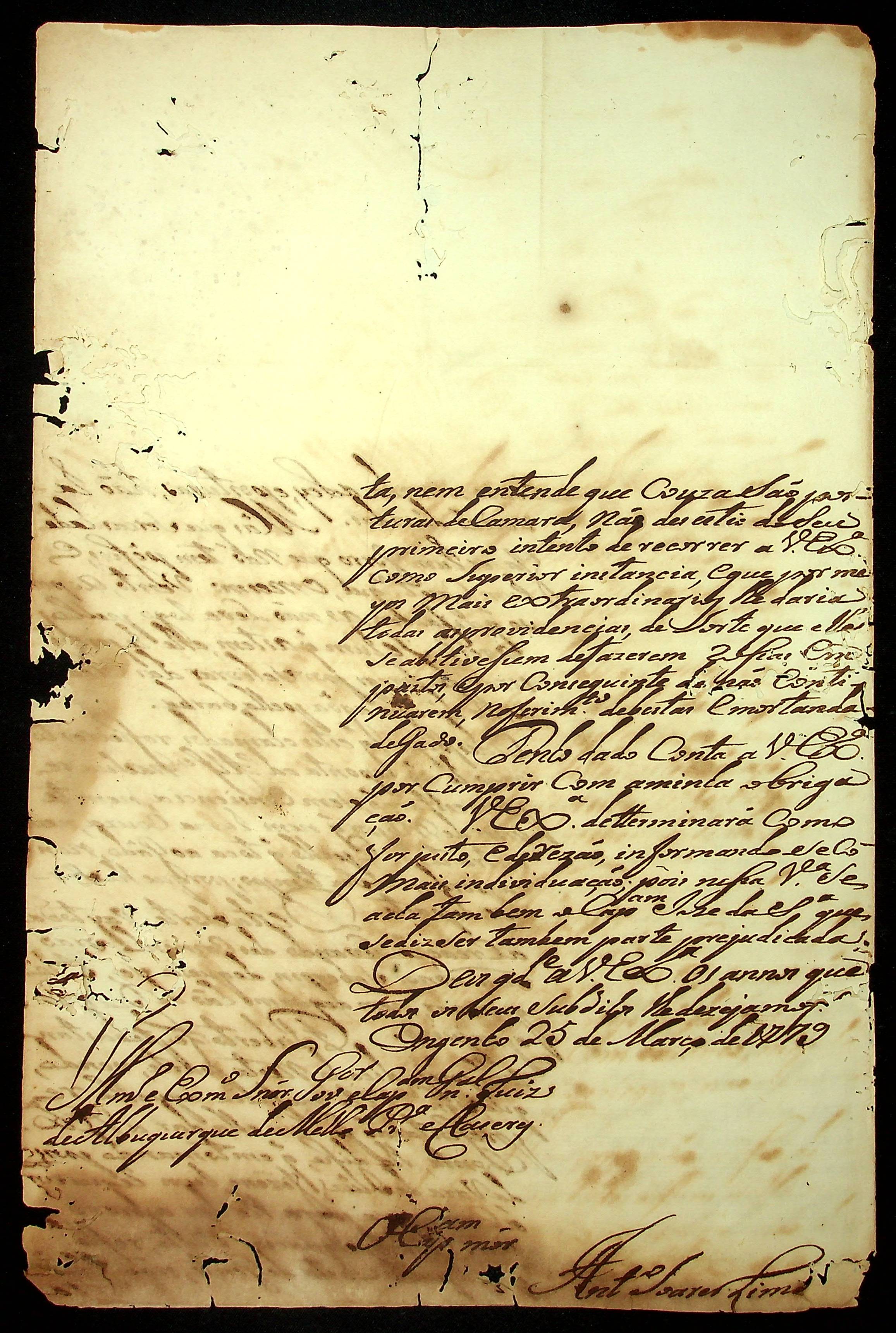 CARTA do Capitão-mor Antônio Soares Lima ao Governador e Capitão-General da Capitania de Mato Grosso Luiz de Albuquerque de Melo Pereira e Cáceres.