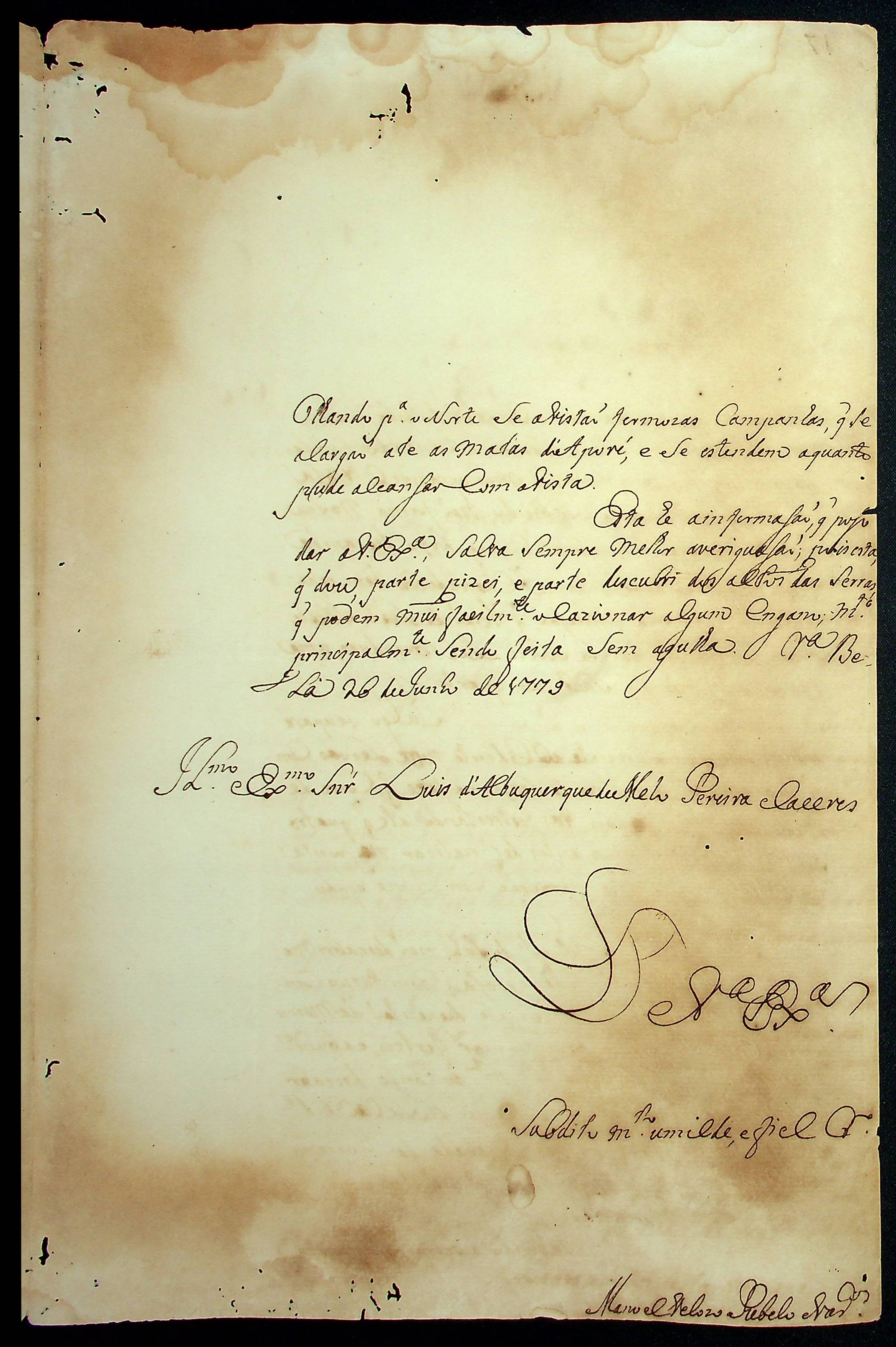 CARTA de Manoel Veloso Rebelo Vasconcelos ao [Governador e Capitão-General da Capitania de Mato Grosso] Luiz de Albuquerque de Melo Pereira e Cáceres.
