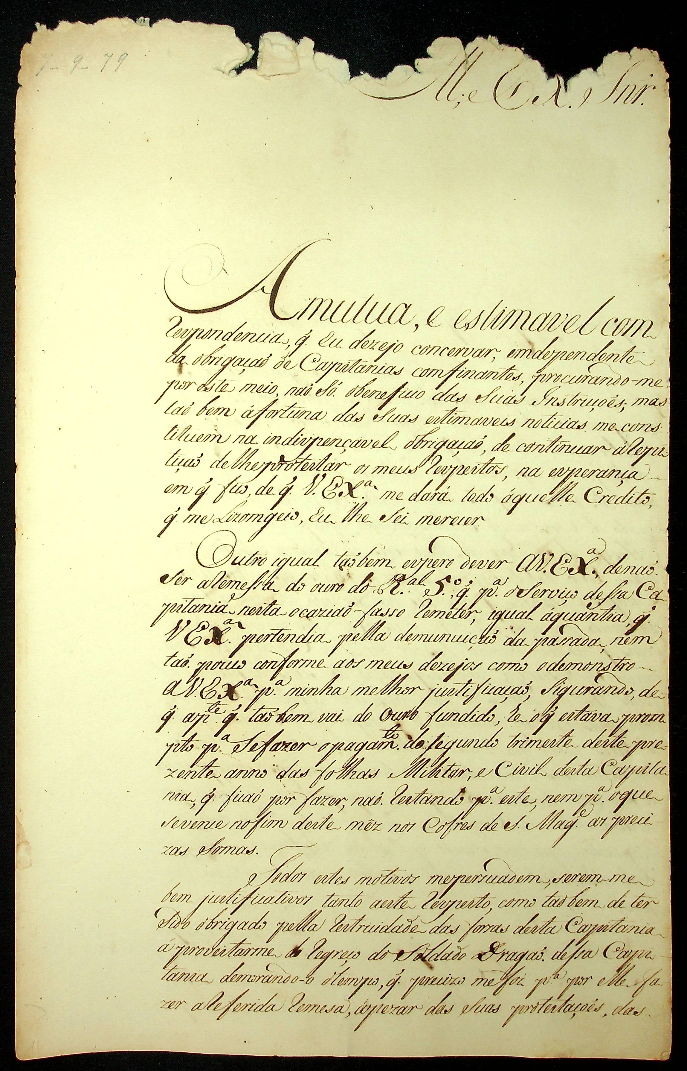 CARTA do [Governador e Capitão-General da Capitania de Goiás] Luís da Cunha Menezes ao [Governador e Capitão-General da Capitania de Mato Grosso] Luiz de Albuquerque de Melo Pereira e Cáceres.