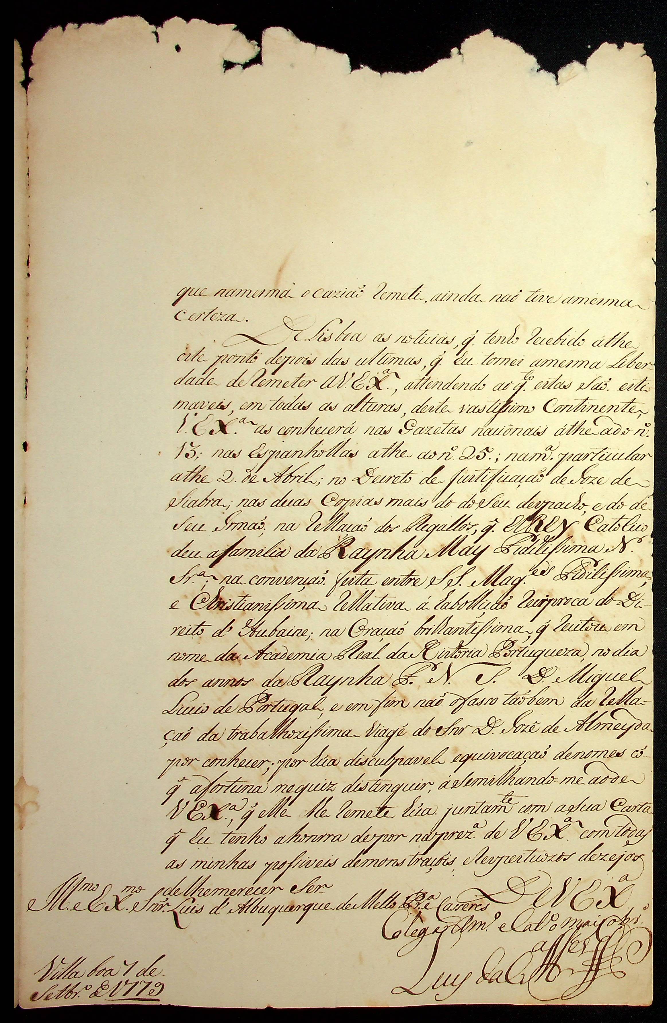 CARTA do [Governador e Capitão-General da Capitania de Goiás] Luís da Cunha Menezes ao [Governador e Capitão-General da Capitania de Mato Grosso] Luiz de Albuquerque de Melo Pereira e Cáceres.