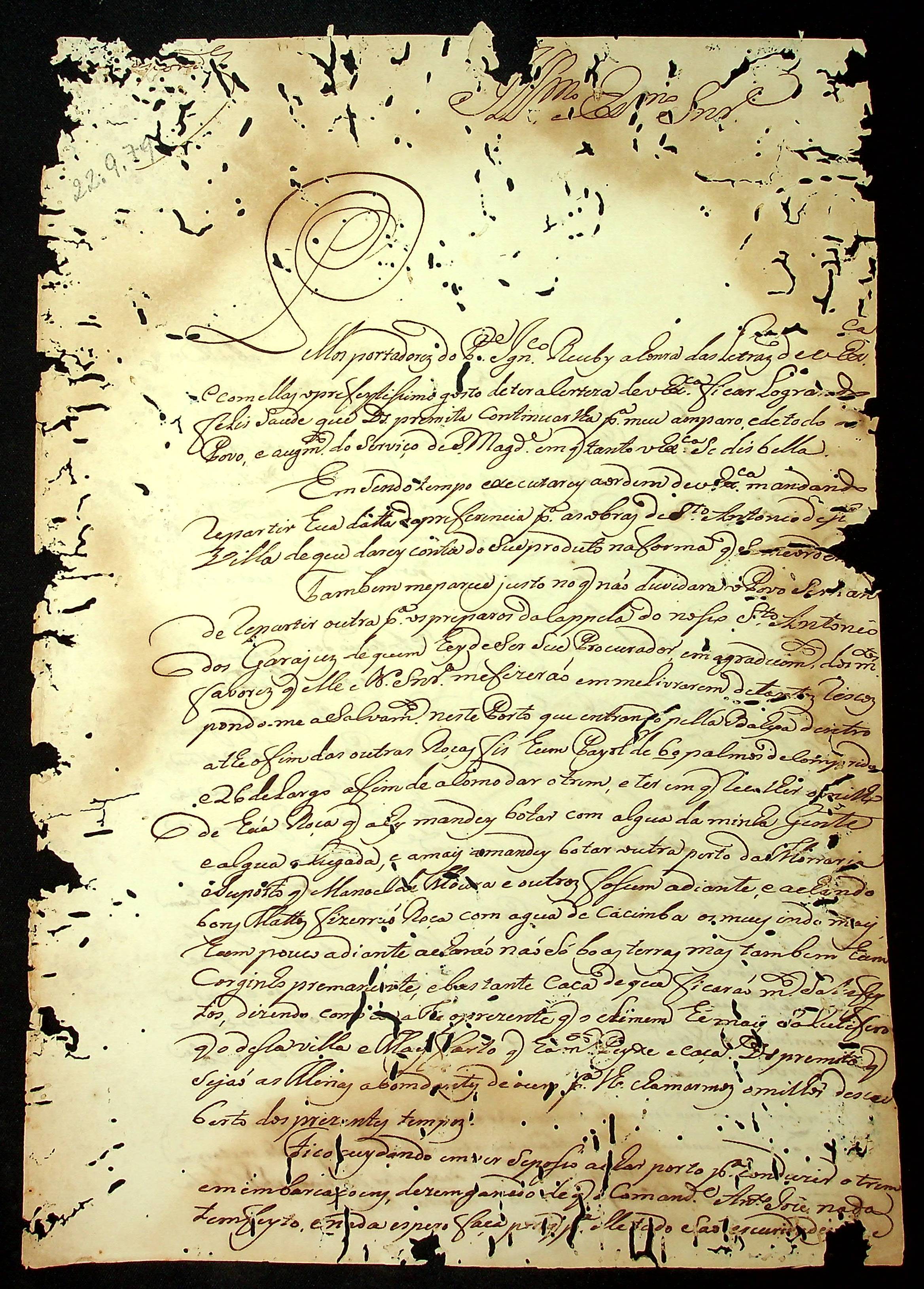 CARTA de João José [...] ao [Governador e Capitão-General da Capitania de Mato Grosso] Luiz de Albuquerque de Melo Pereira e Cáceres.