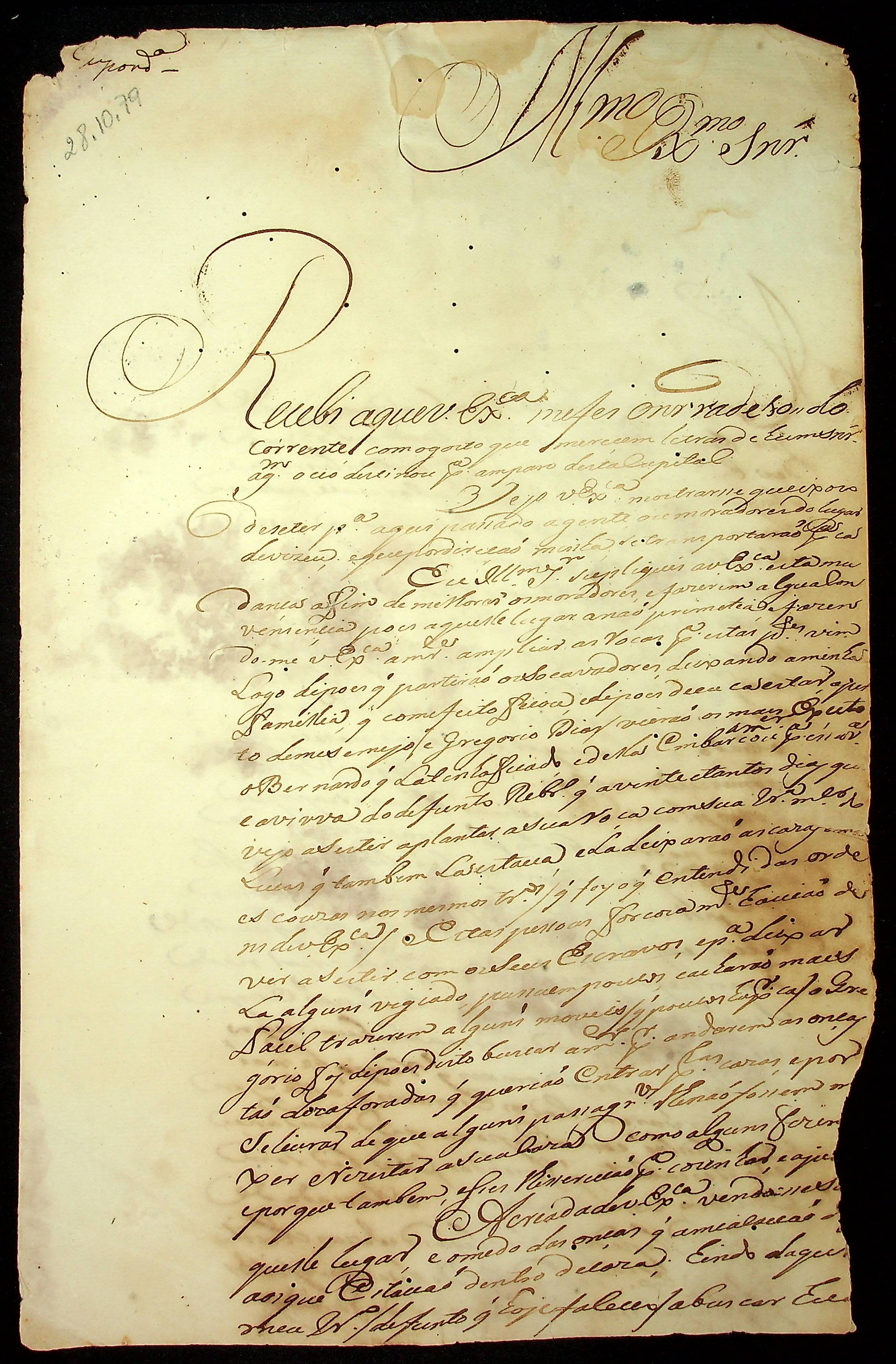 CARTA de Antônio José de [Oliveira Andrade] ao [Governador e Capitão-General da Capitania de Mato Grosso Luiz de Albuquerque de Melo Pereira e Cáceres].