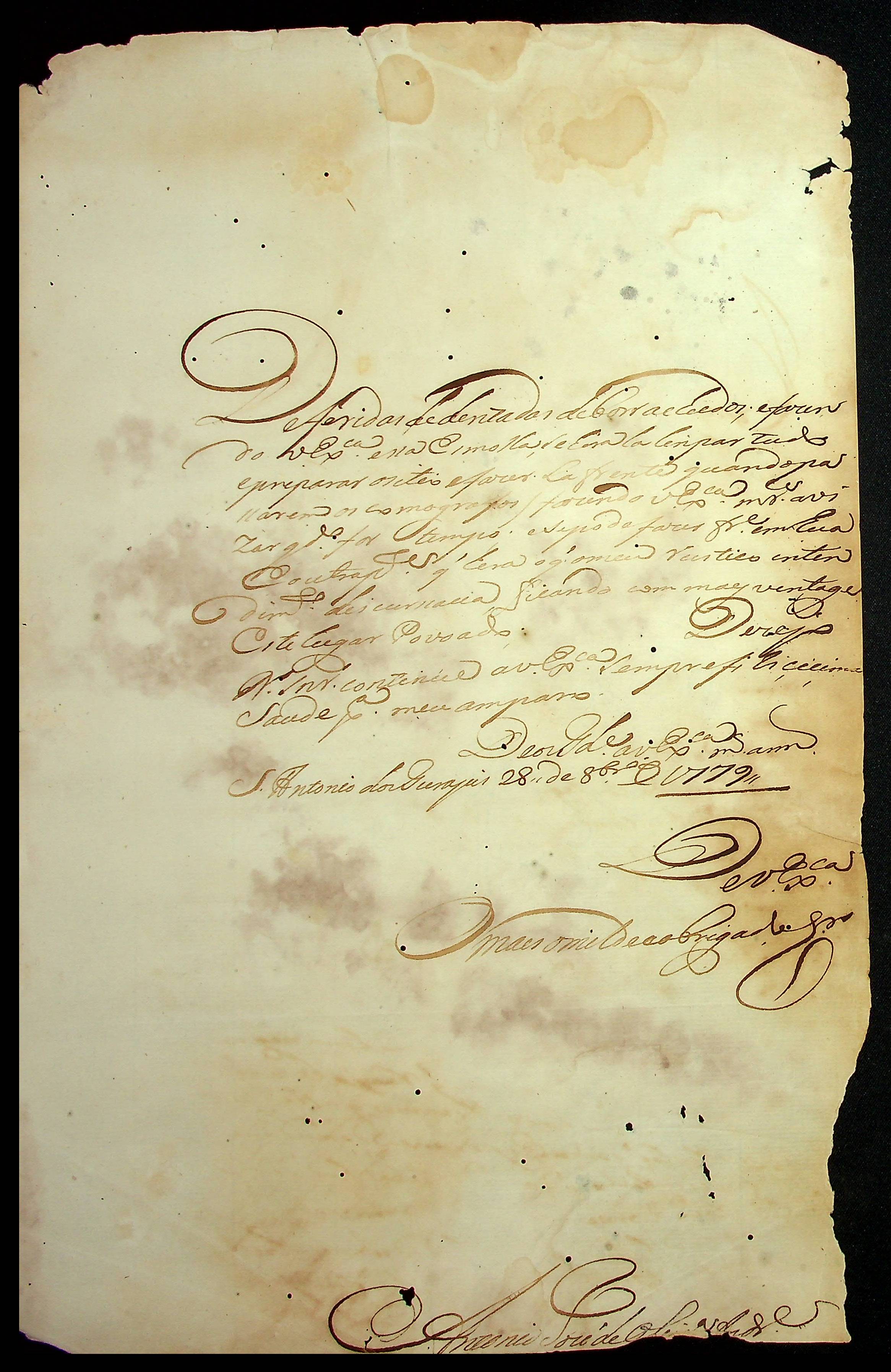 CARTA de Antônio José de [Oliveira Andrade] ao [Governador e Capitão-General da Capitania de Mato Grosso Luiz de Albuquerque de Melo Pereira e Cáceres].