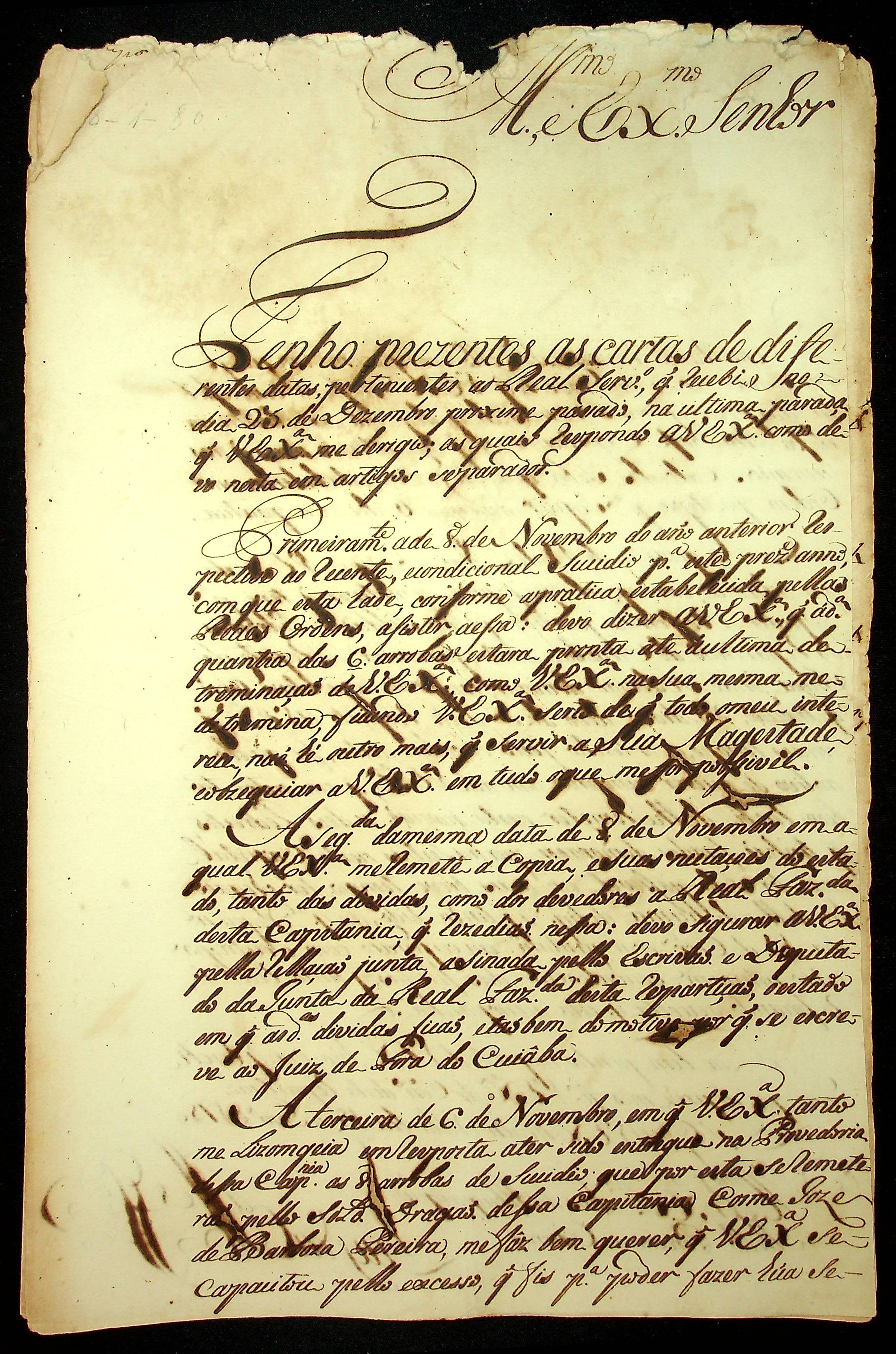 CARTA do [Governador e Capitão-General da Capitania de Goiás] Luiz da Cunha Menezes ao [Governador e Capitão-General da Capitania de Mato Grosso] Luiz de Albuquerque de Melo Pereira e Cáceres.