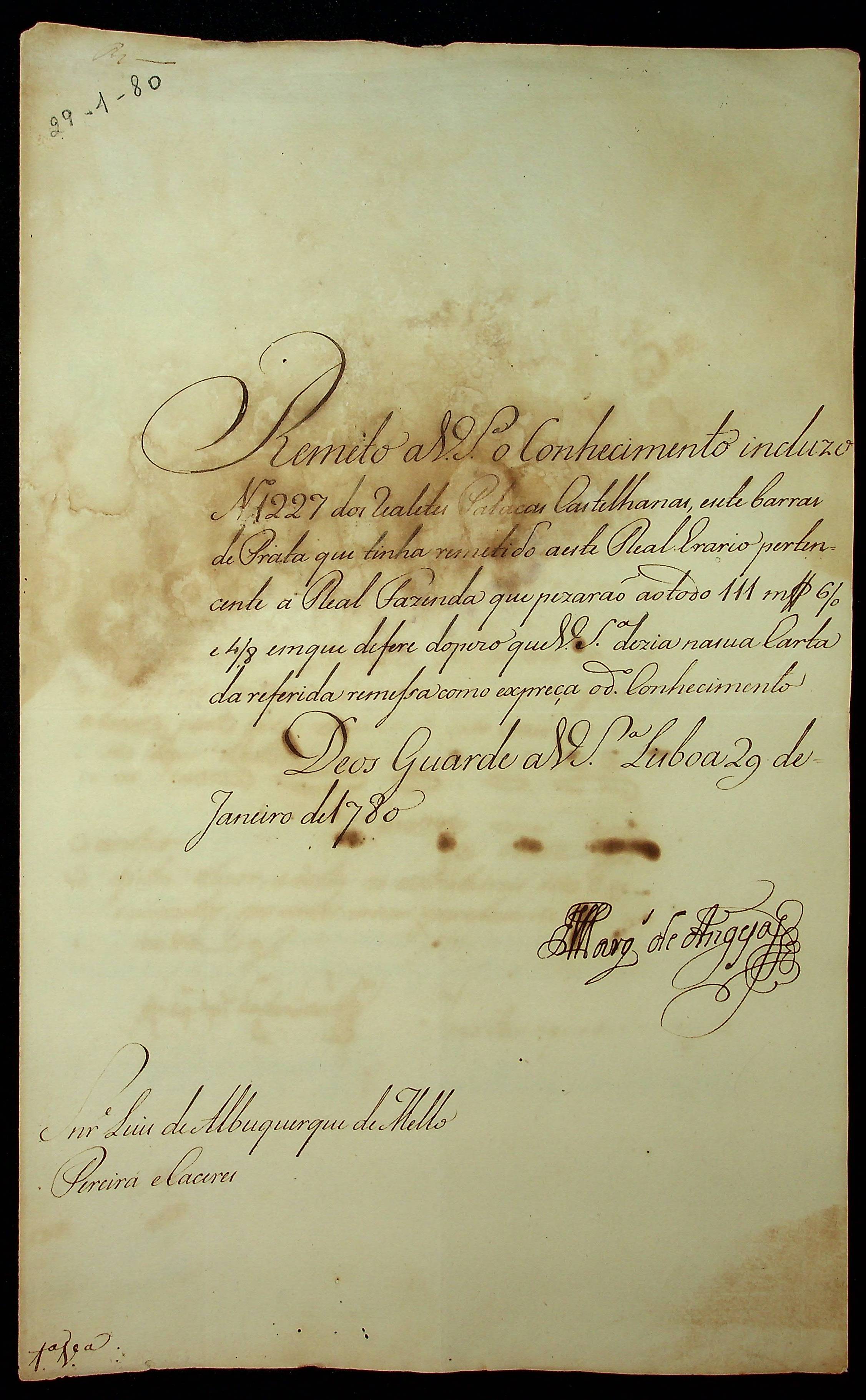 CARTA do Marquês de Angya ao [Governador e Capitão-General da Capitania de Mato Grosso] Luiz de Albuquerque de Melo Pereira e Cáceres.