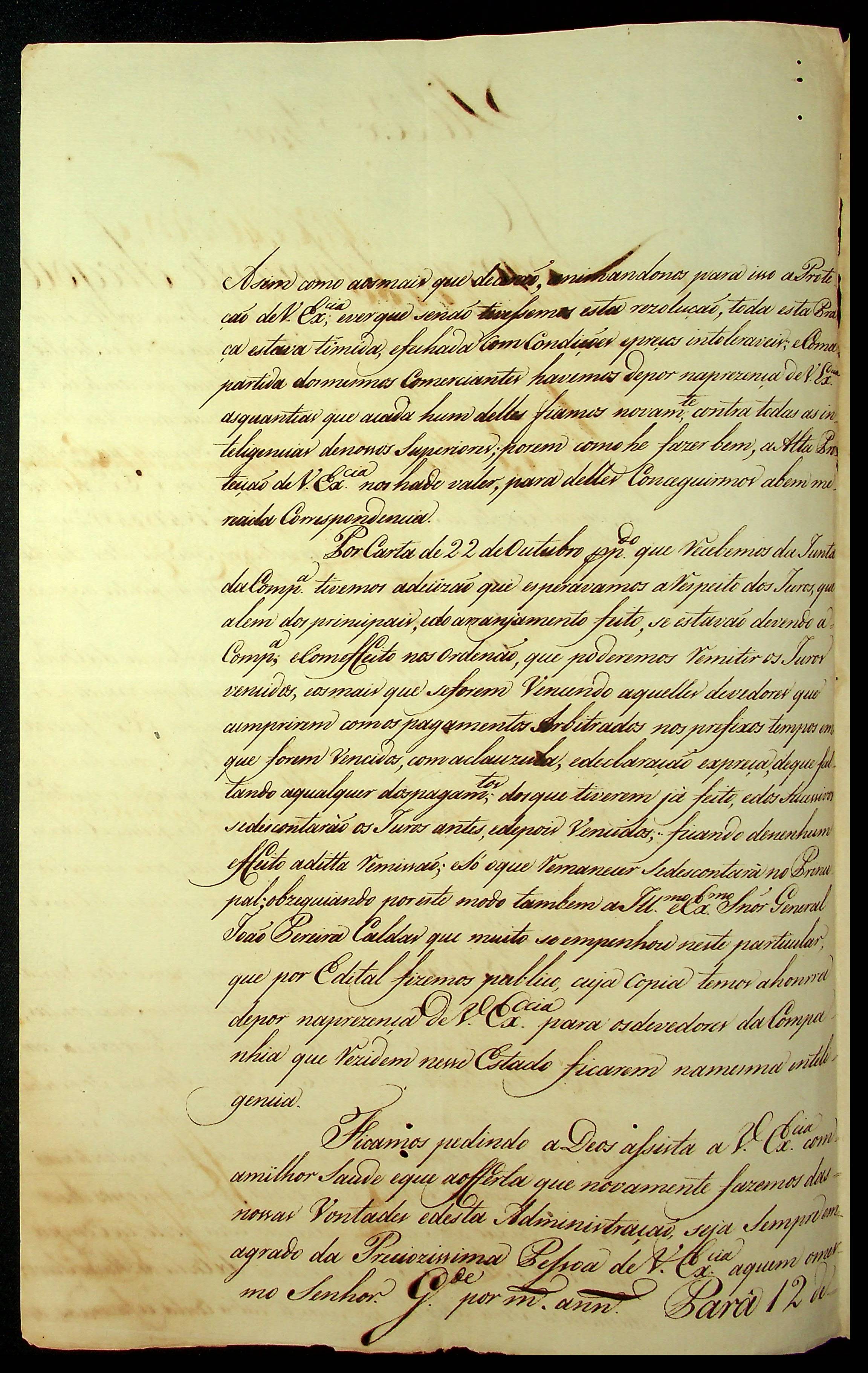 CARTA de Antônio Coutinho de Almeida e Manuel José da Cunha ao [Governador e Capitão-General da Capitania de Mato Grosso] Luiz de Albuquerque de Melo Pereira e Cáceres.