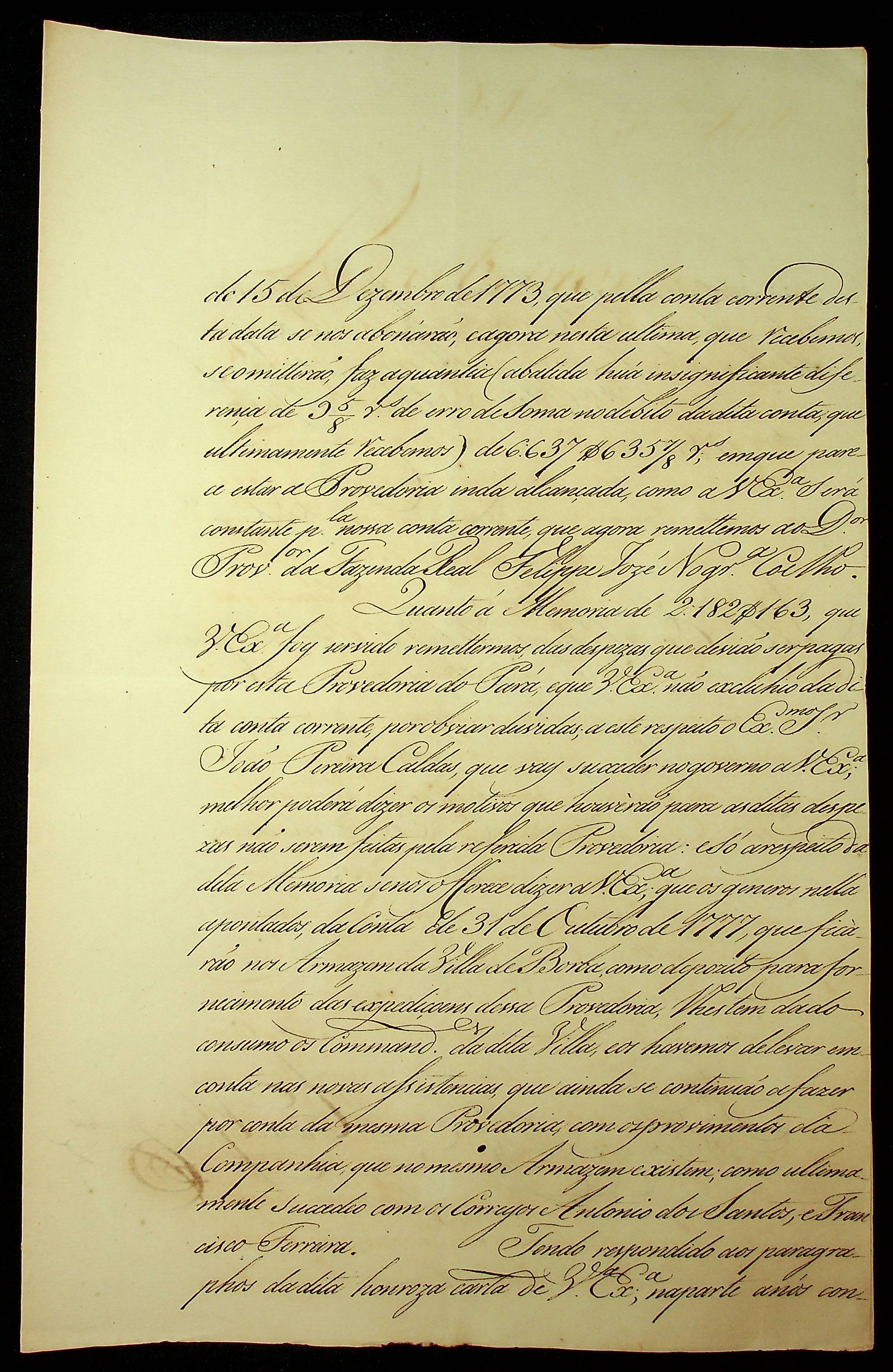 CARTA de Antônio Coutinho de Almeida e Manoel José da Cunha ao [Governador e Capitão-General da Capitania de Mato Grosso] Luiz de Albuquerque de Melo Pereira e Cáceres.