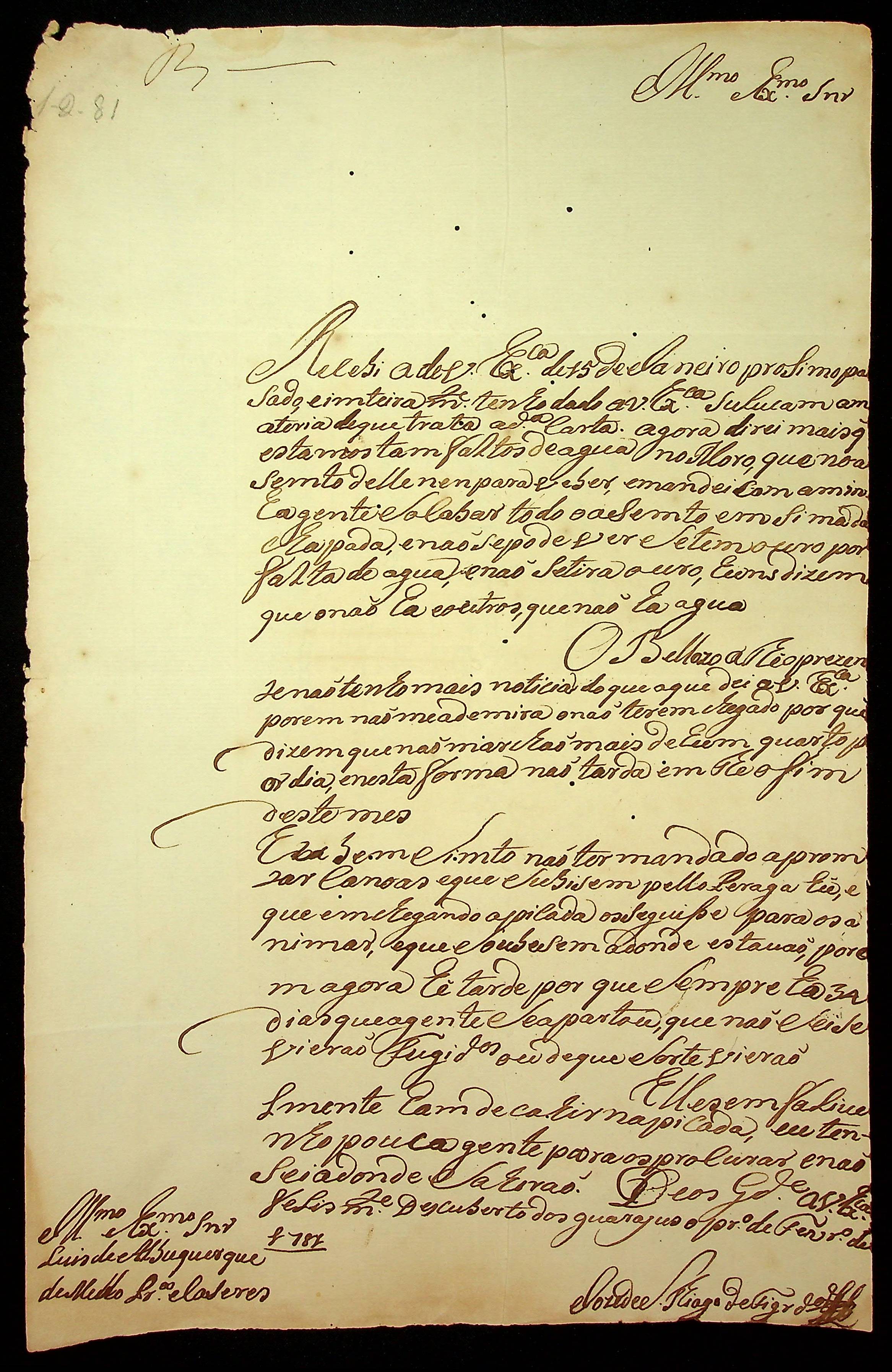 CARTA de José de Santiago Figueiredo ao [Governador e Capitão-General da Capitania de Mato Grosso Luiz de Albuquerque de Melo Pereira e Cáceres].