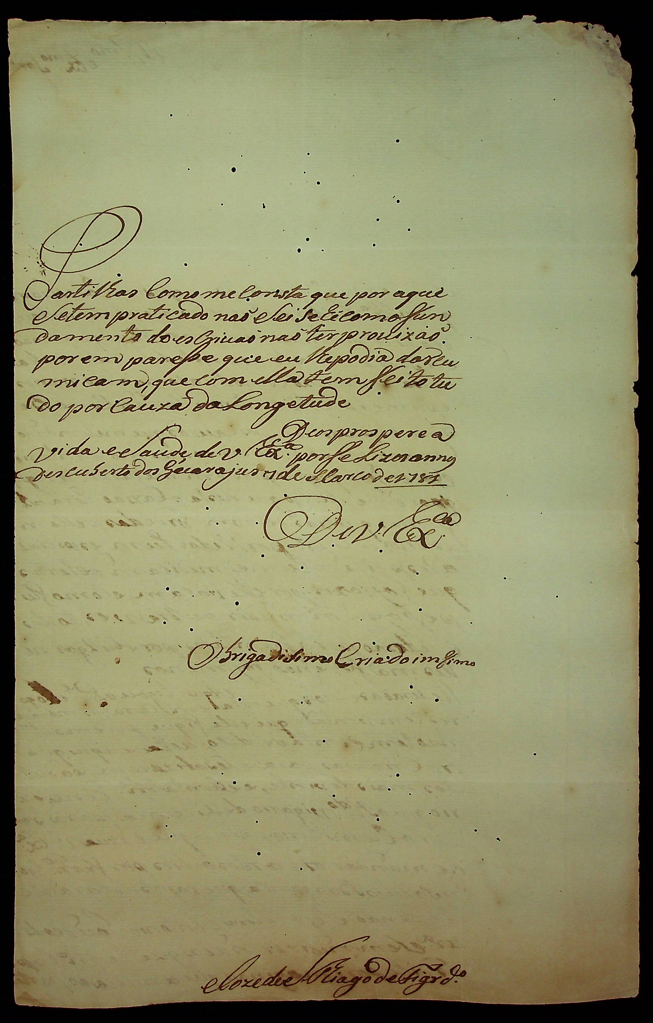 CARTA de José Santiago de Figueiredo ao [Governador e Capitão-General da Capitania de Mato Grosso] Luiz de Albuquerque de Melo Pereira e Cáceres.