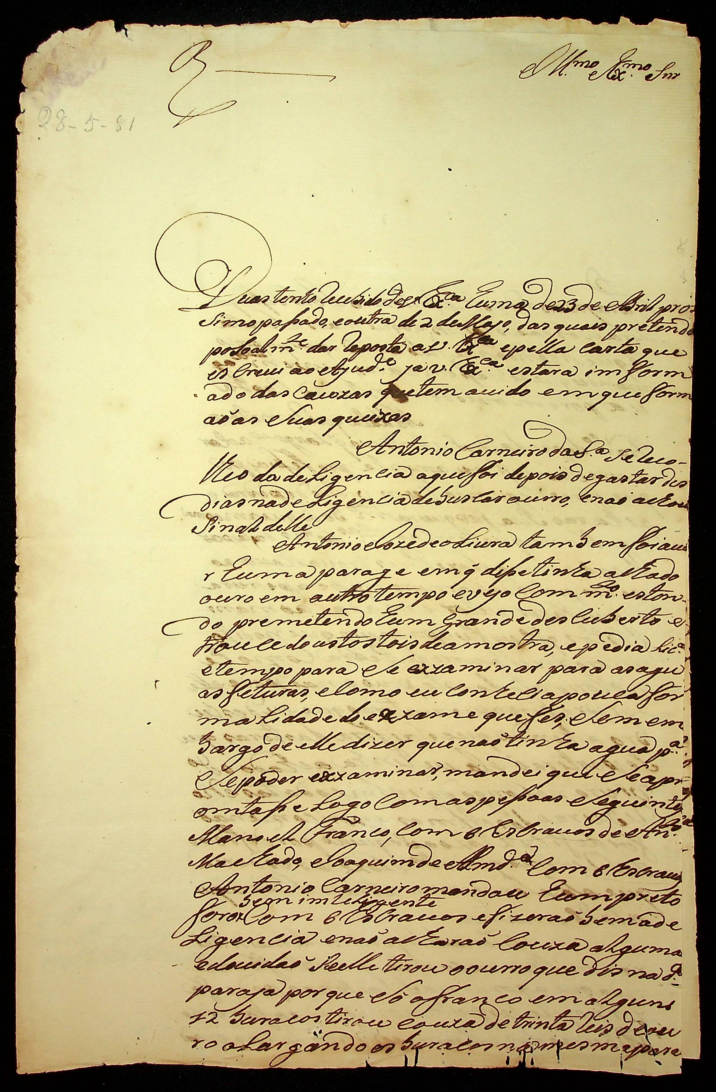 CARTA de José Santiago de Figueiredo ao [Governador e Capitão-General da Capitania de Mato Grosso] Luiz de Albuquerque de Melo Pereira e Cáceres.