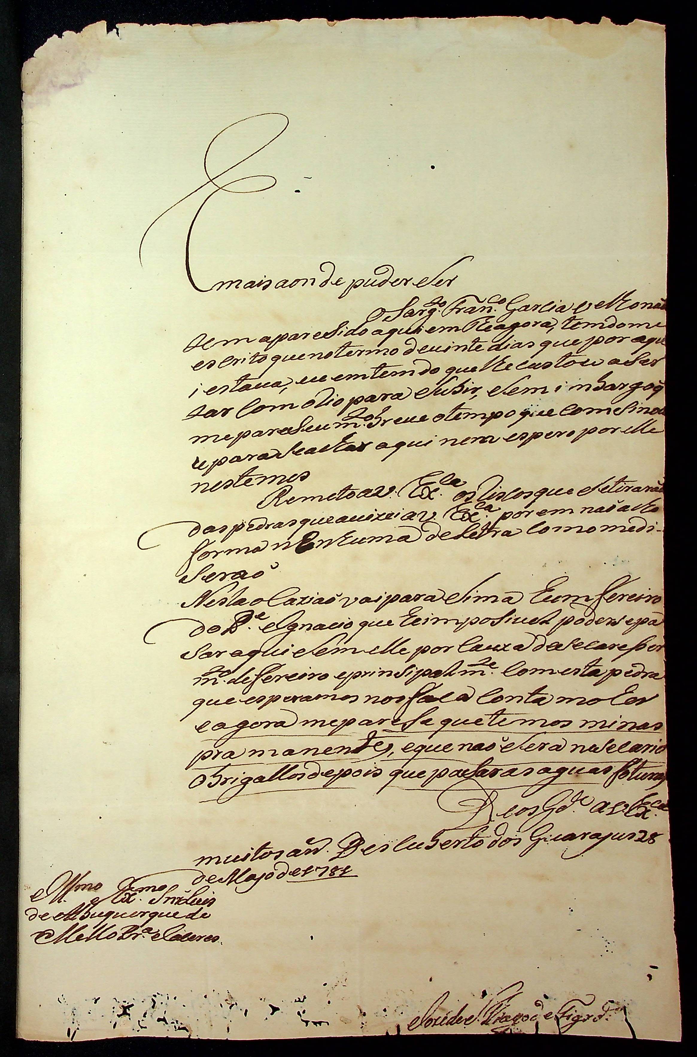 CARTA de José Santiago de Figueiredo ao [Governador e Capitão-General da Capitania de Mato Grosso] Luiz de Albuquerque de Melo Pereira e Cáceres.
