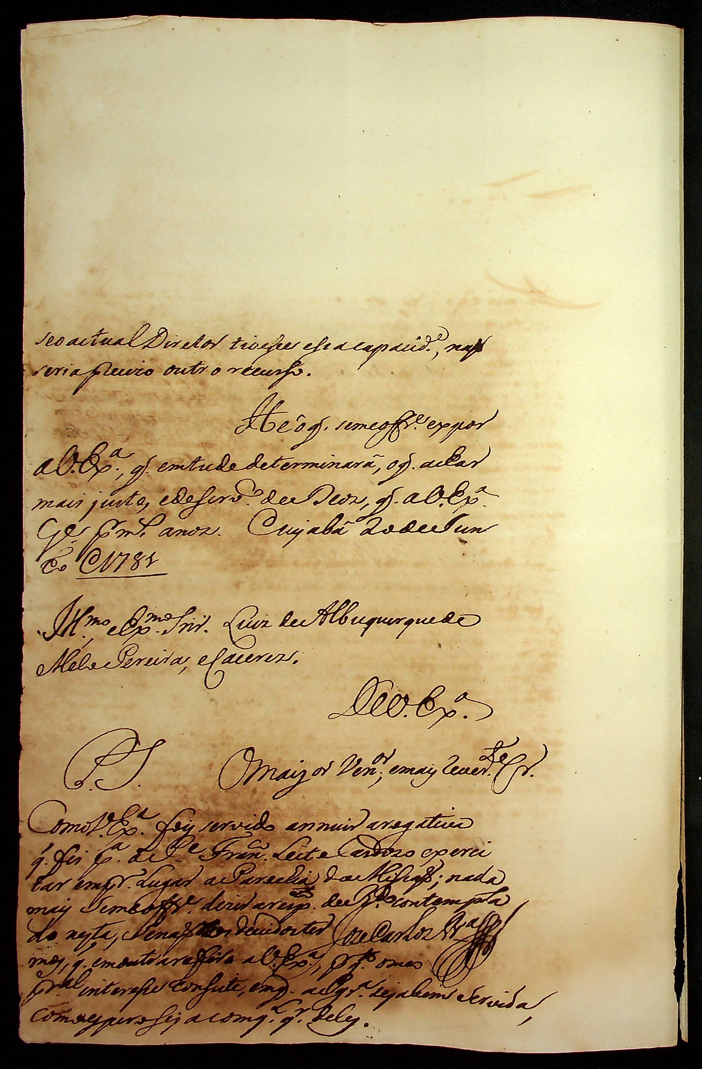 CARTA de José Carlos Pereira ao [Governador e Capitão-General da Capitania de Mato Grosso] Luiz de Albuquerque de Melo Pereira e Cáceres.
