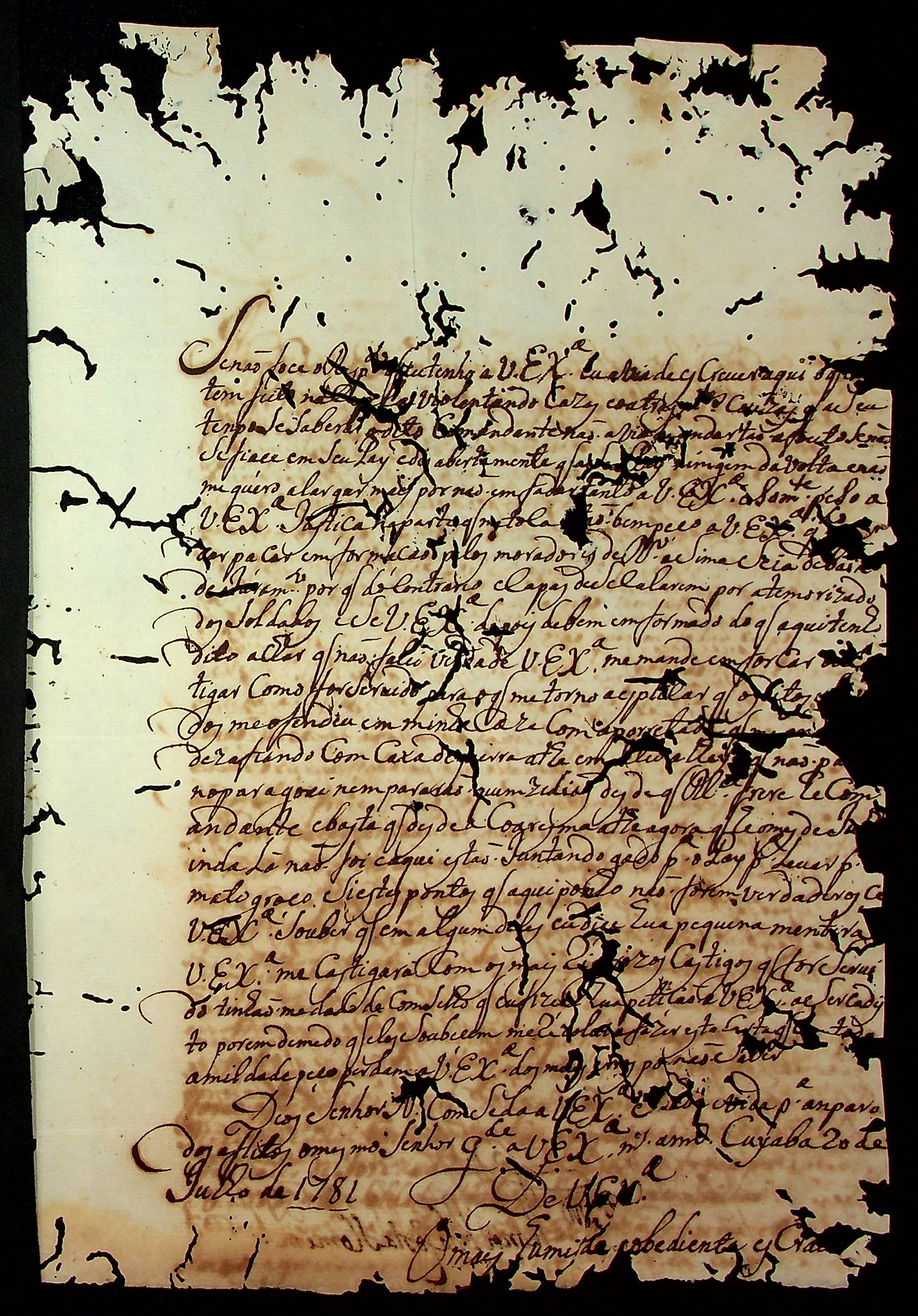 CARTA de Manoel da Costa Homem ao [Governador e Capitão-General da Capitania de Mato Grosso Luiz de Albuquerque de Melo Pereira e Cáceres].
