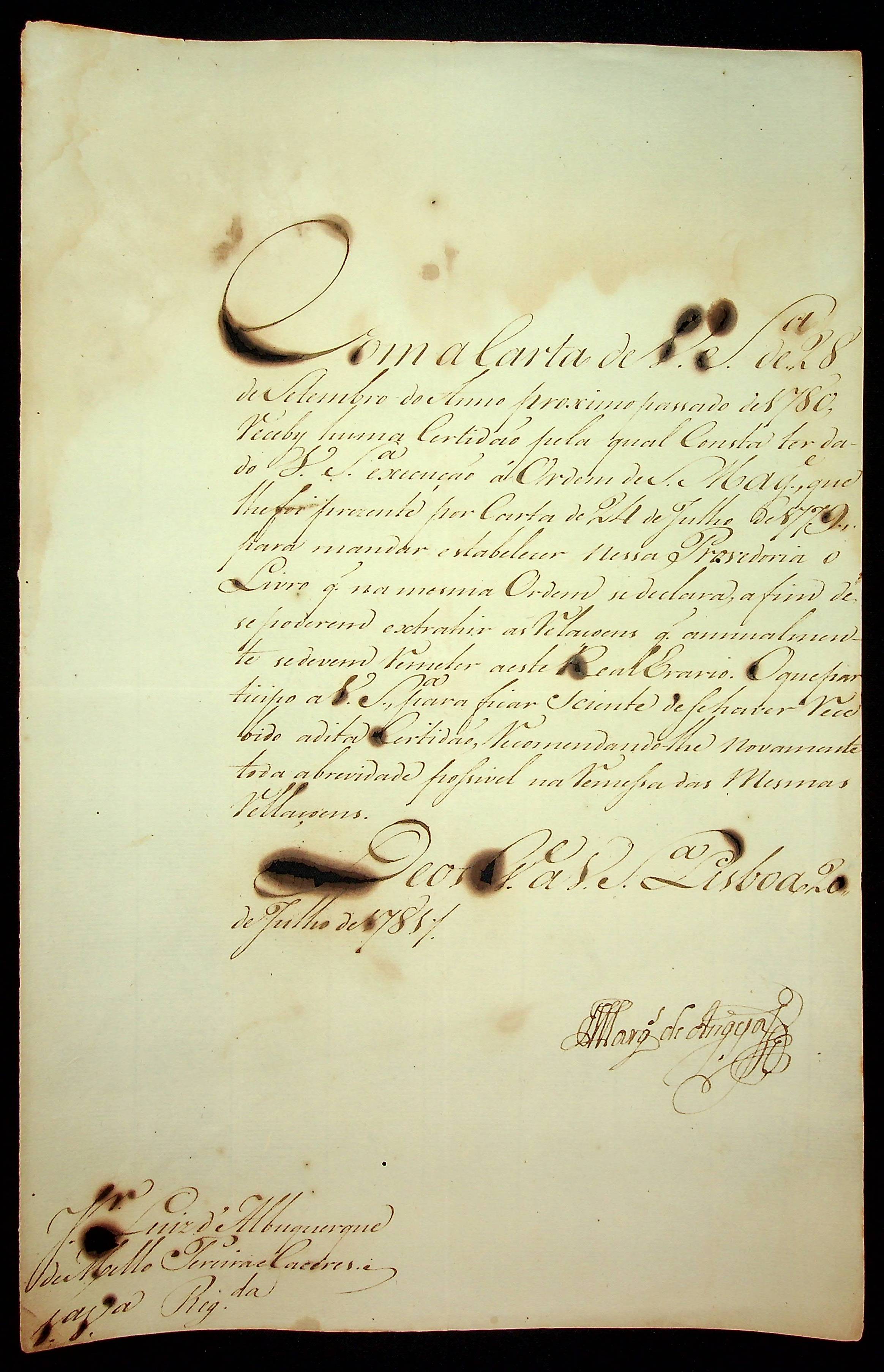 CARTA do Marquês de Angya ao [Governador e Capitão-General da Capitania de Mato Grosso] Luiz de Albuquerque de Melo Pereira e Cáceres.