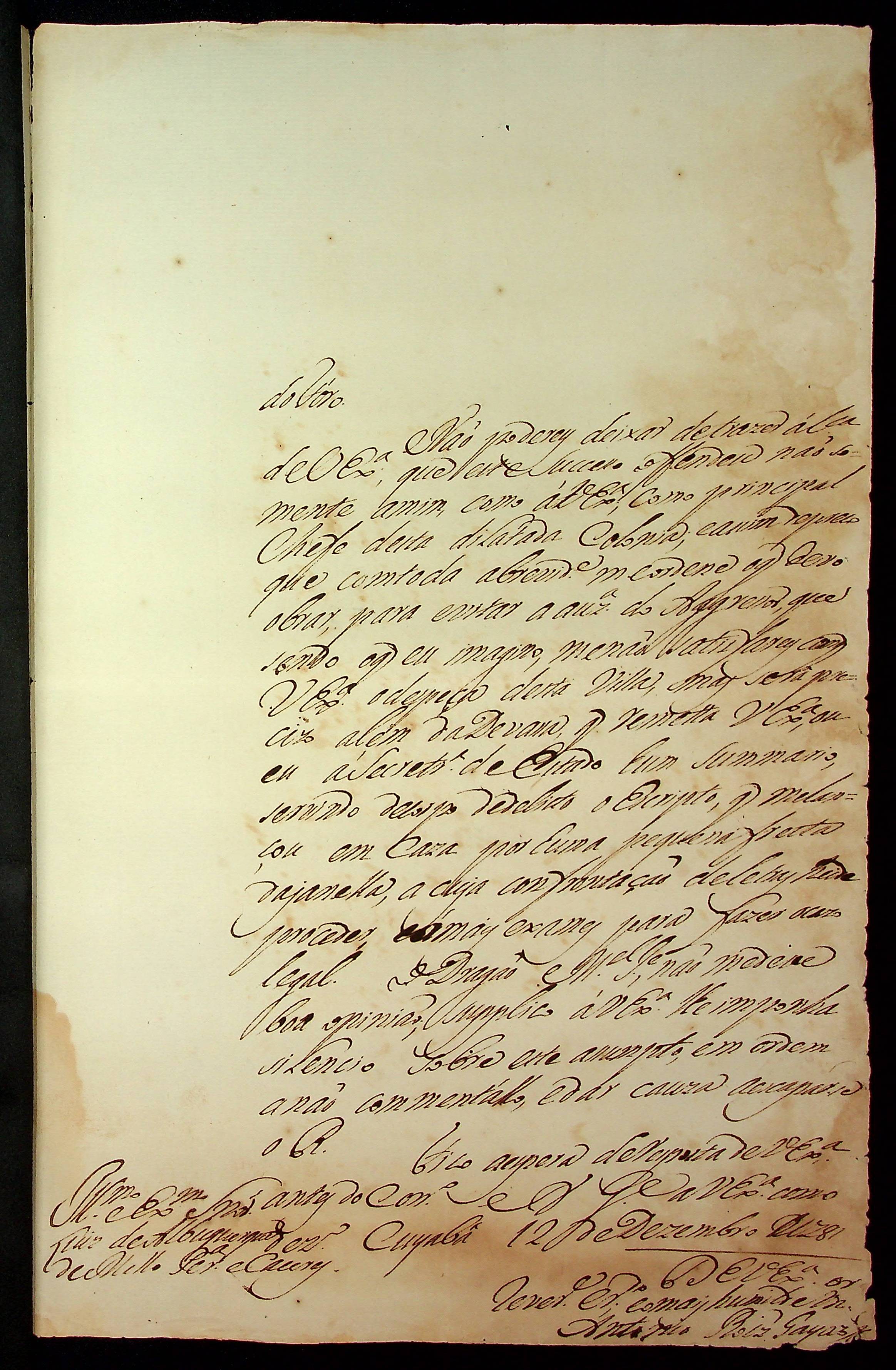 CARTA do [Juiz de Fora] Antônio Rodrigues Gayoso ao [Governador e Capitão-General da Capitania de Mato Grosso] Luiz de Albuquerque de Melo Pereira e Cáceres.