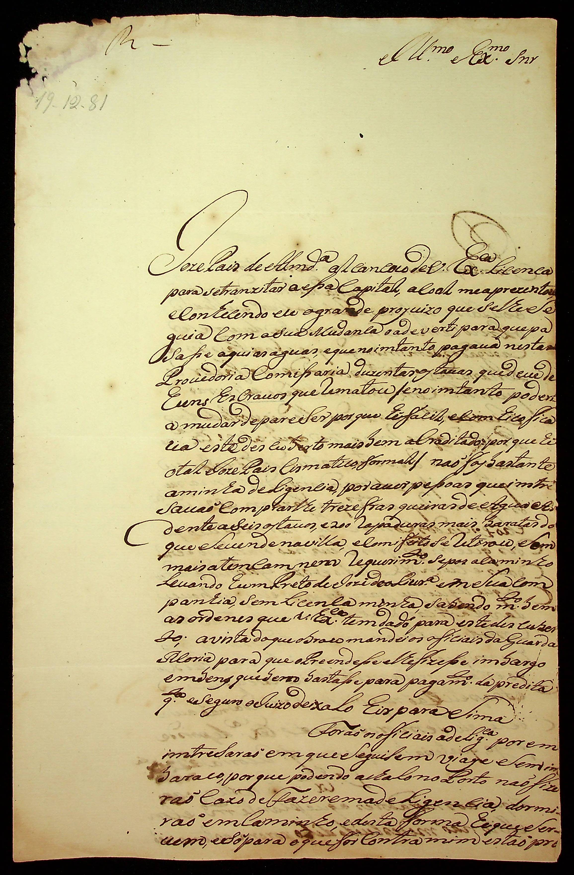 CARTA de José de Santiago Figueiredo ao [Governador e Capitão-General da Capitania de Mato Grosso] Luiz de Albuquerque de Melo Pereira e Cáceres.