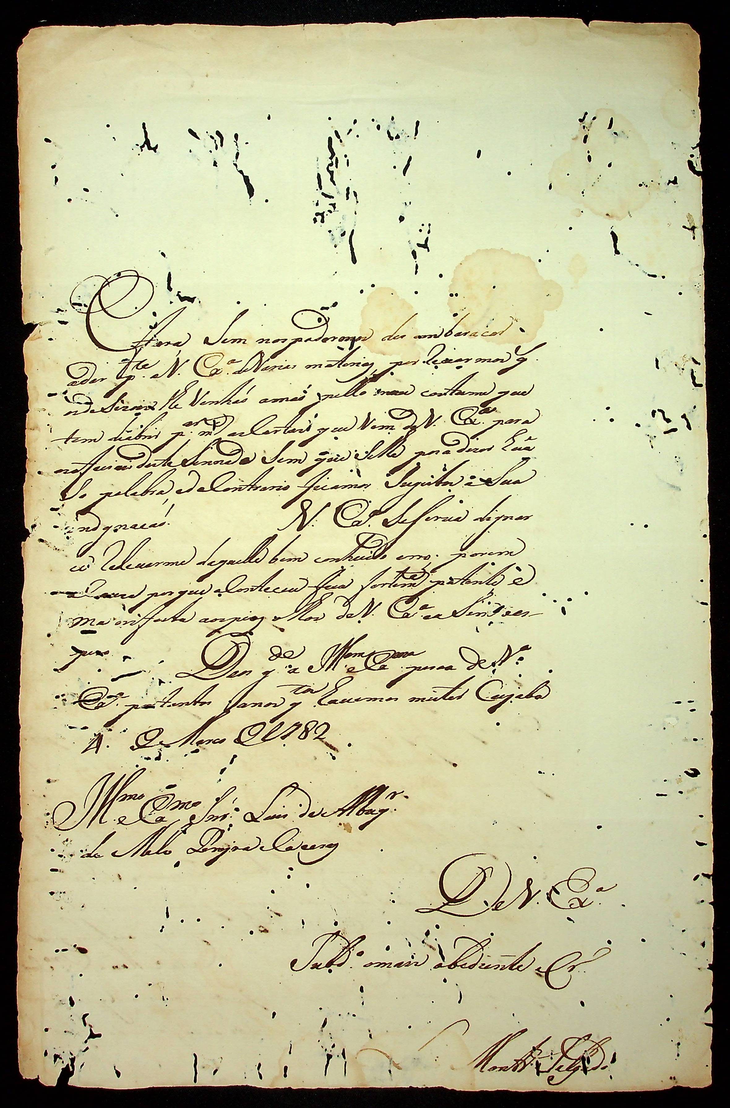 CARTA de [L...] Monteiro Salgado ao [Governador e Capitão-General da Capitania de Mato Grosso] Luiz de Albuquerque de Melo Pereira e Cáceres.