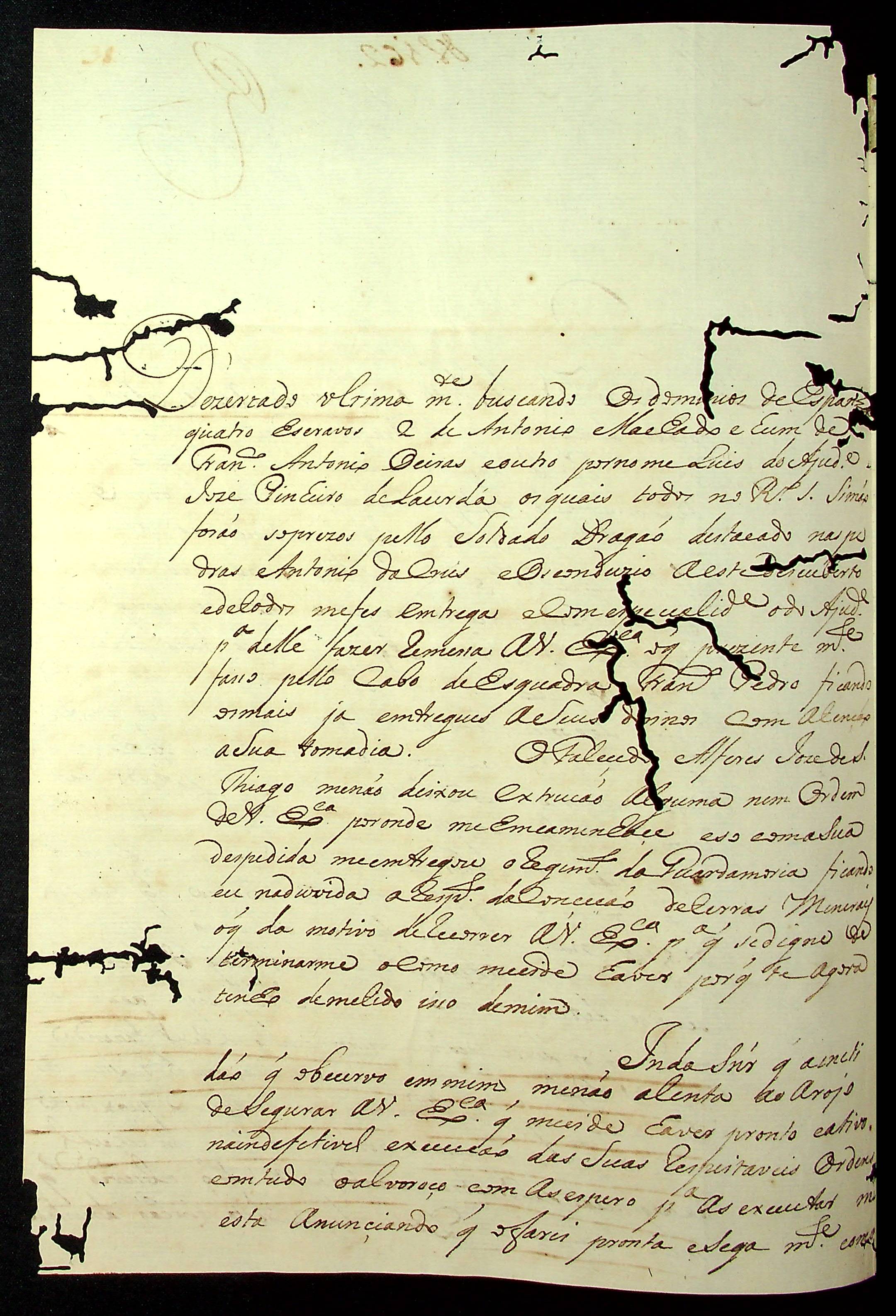 CARTA de Francisco de Paula Correa ao [Governador e Capitão-General da Capitania de Mato Grosso] Luiz de Albuquerque de Melo Pereira e Cáceres.