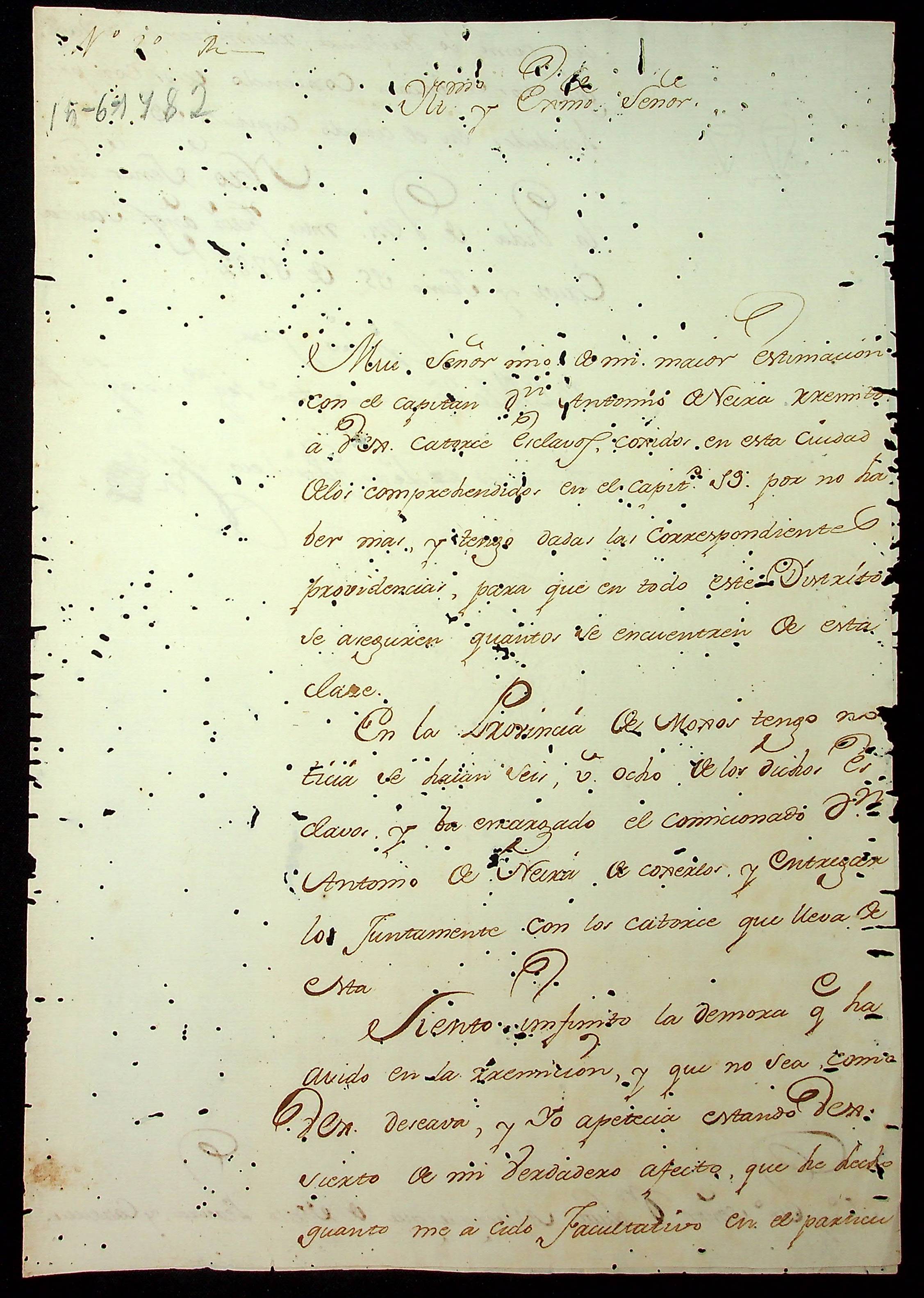 CARTA de Thomas de Lezo e Pacheco Solis ao [Governador e Capitão-General da Capitania de Mato Grosso] Luiz de Albuquerque de Melo Pereira e Cáceres.
