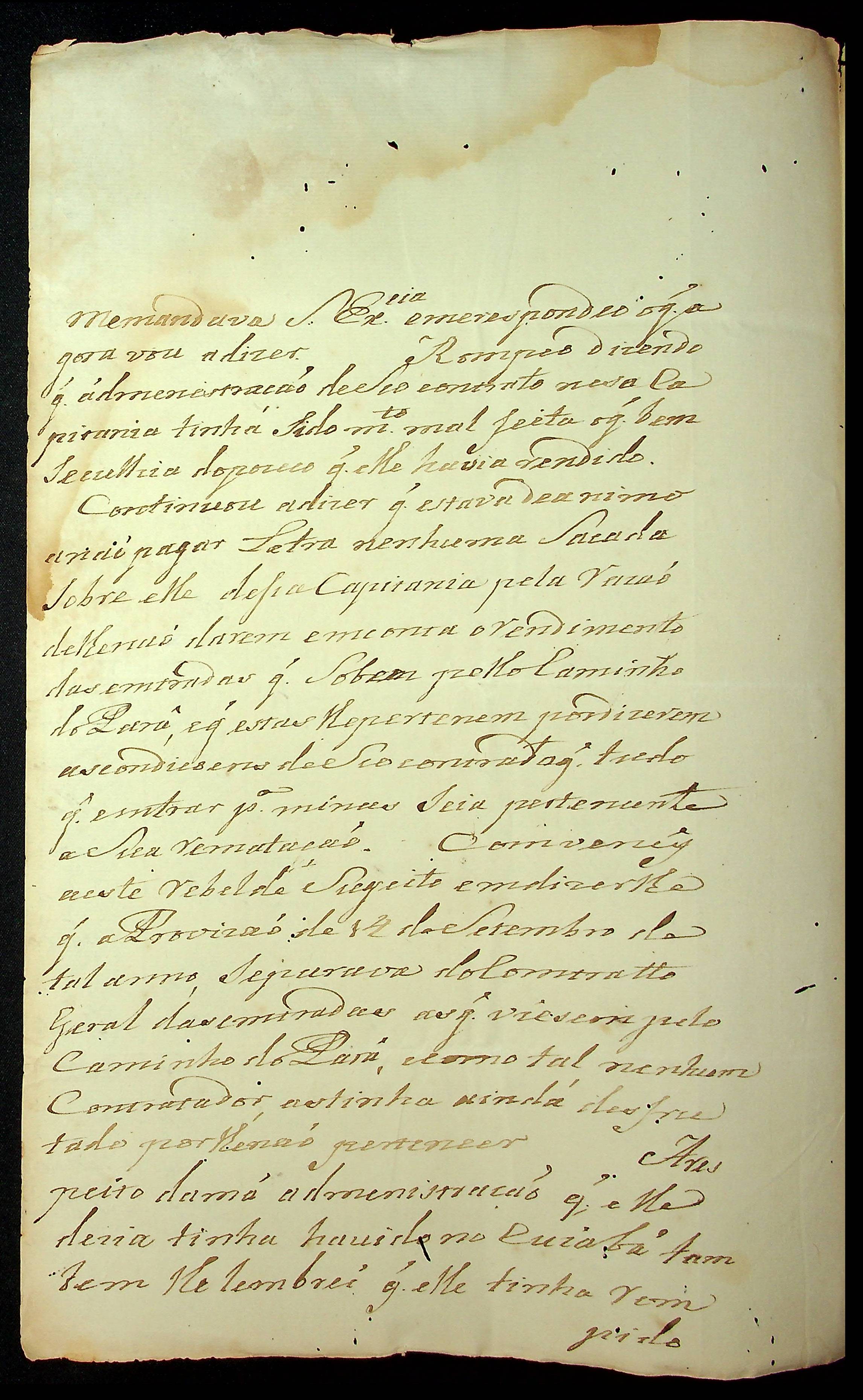 CARTA de Gregório Pereira de Souza ao [Governador e Capitão-General da Capitania de Mato Grosso] Luiz de Albuquerque de Melo Pereira e Cáceres.