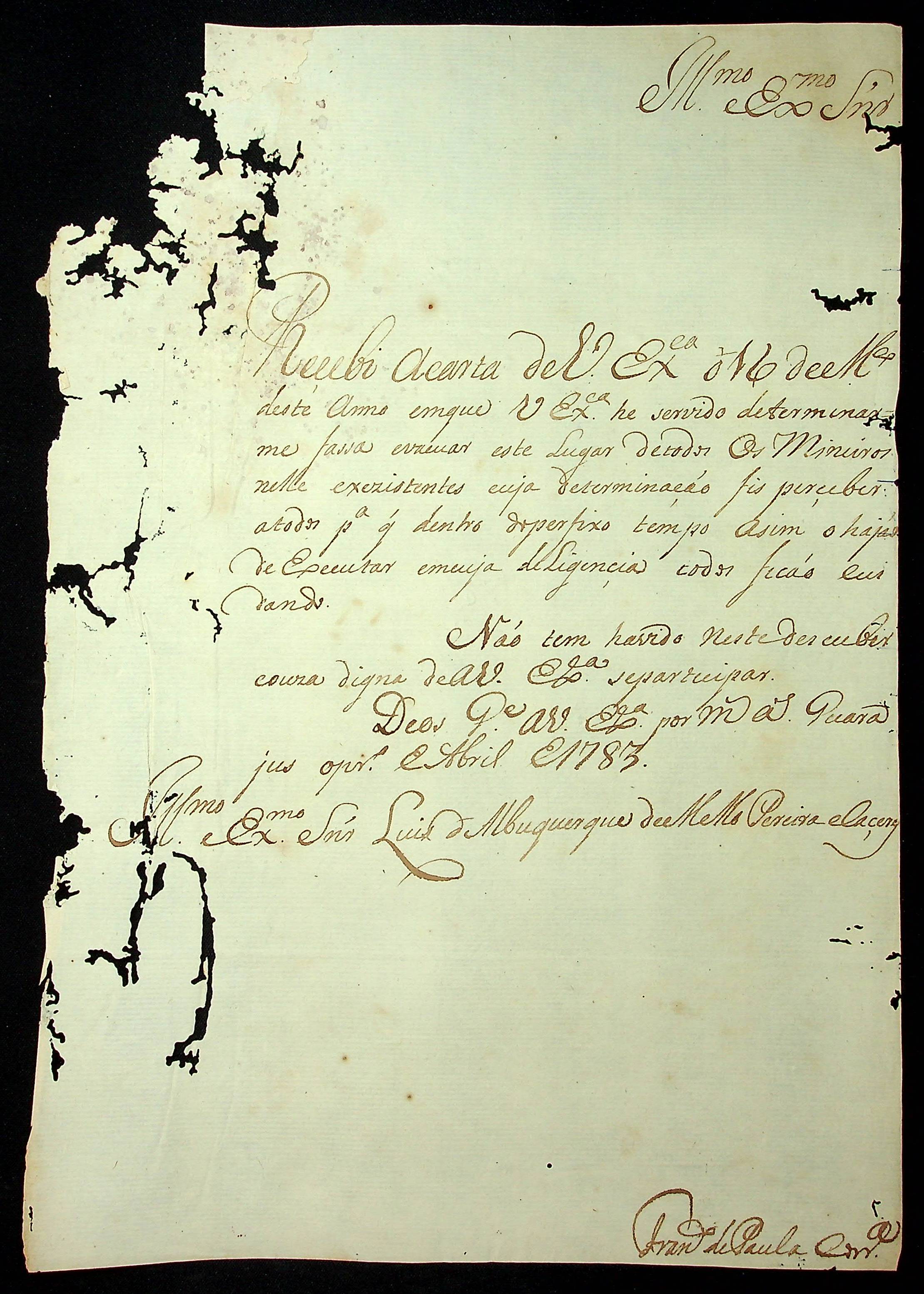CARTA de Francisco de Paula Conceição ao [Governador e Capitão-General da Capitania de Mato Grosso] Luiz de Albuquerque de Melo Pereira e Cáceres.