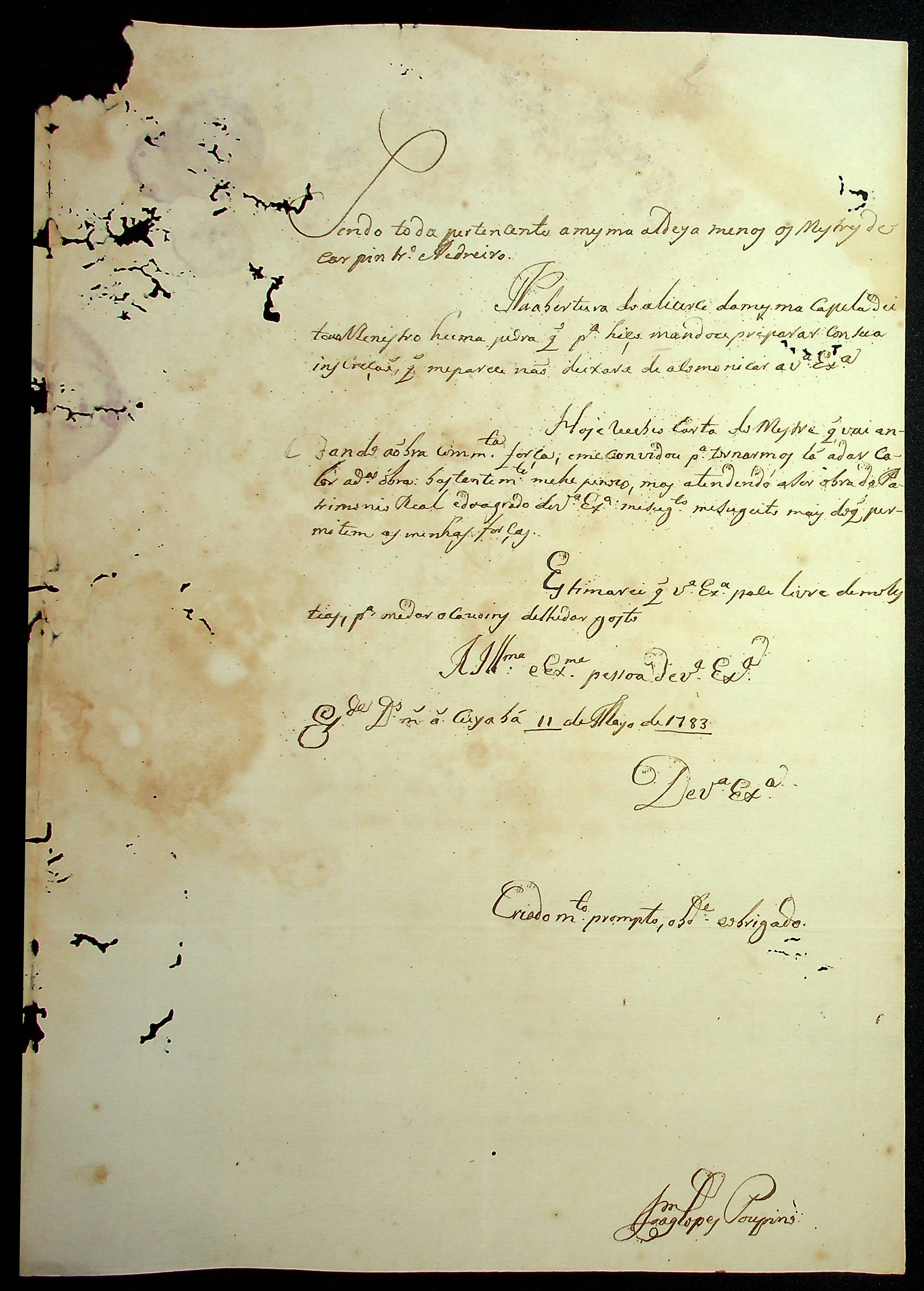 CARTA de Joaquim Lopes Poupino ao [Governador e Capitão-General da Capitania de Mato Grosso Luiz de Albuquerque de Melo Pereira e Cáceres].